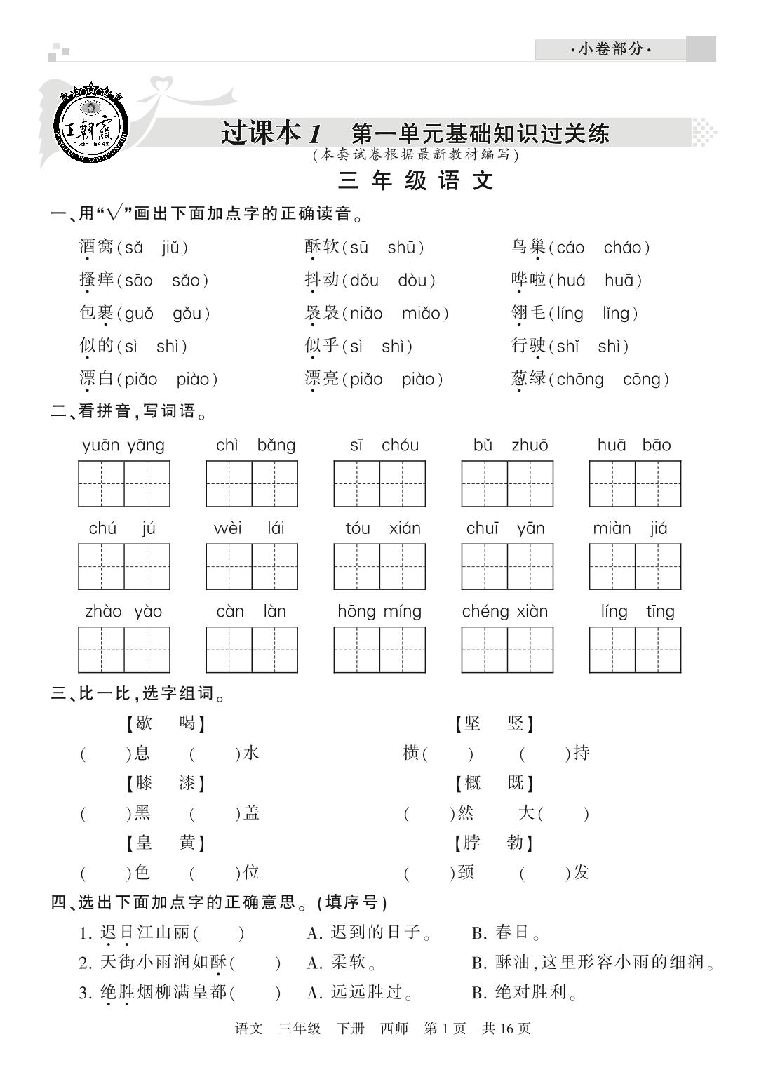 王朝霞期末小卷三年级下册语文(西师版)_R21080192810【0】