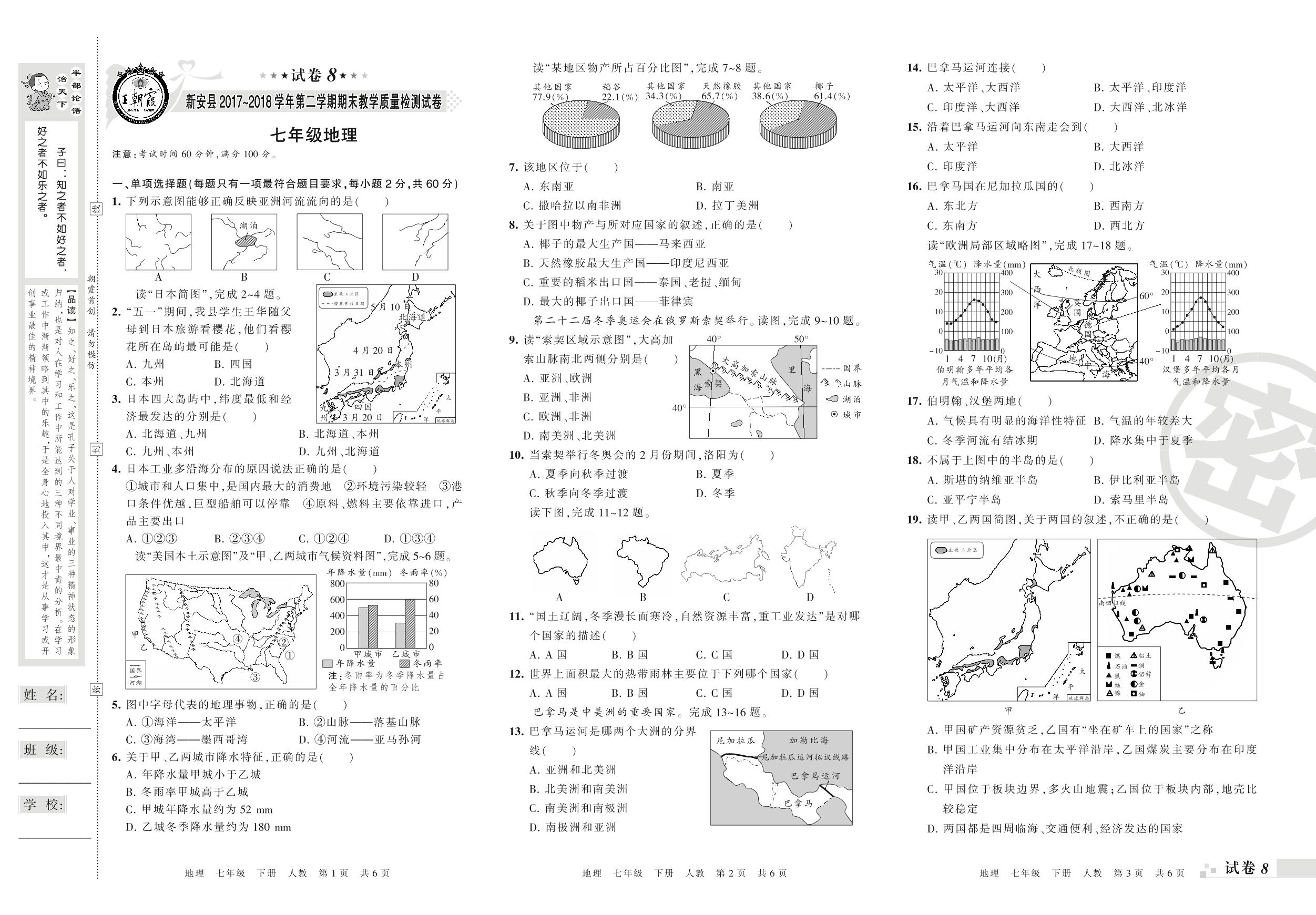 2017-2018学年第二学期洛阳市新安县七年级地理试卷(人教版)【8】