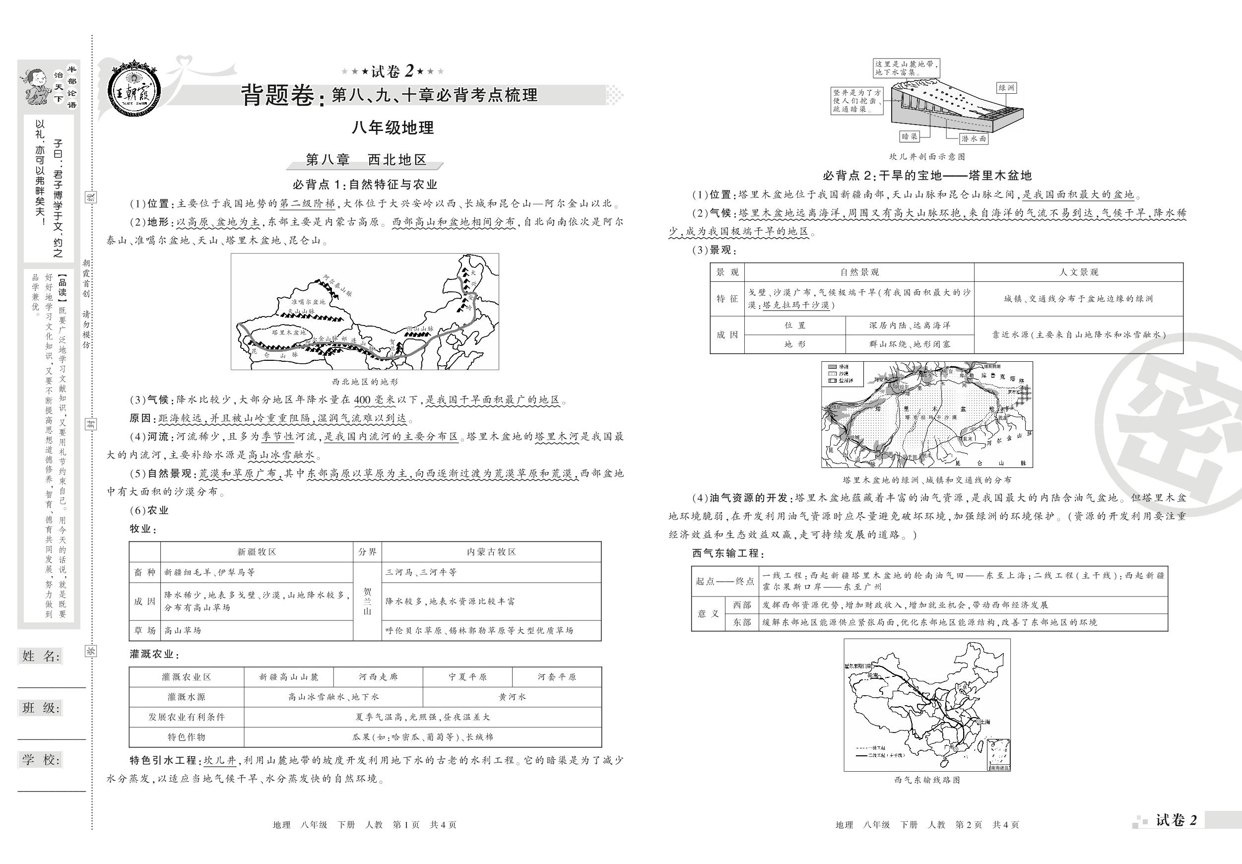 王朝霞期末背题卷八年级下册地理(人教版)【2】