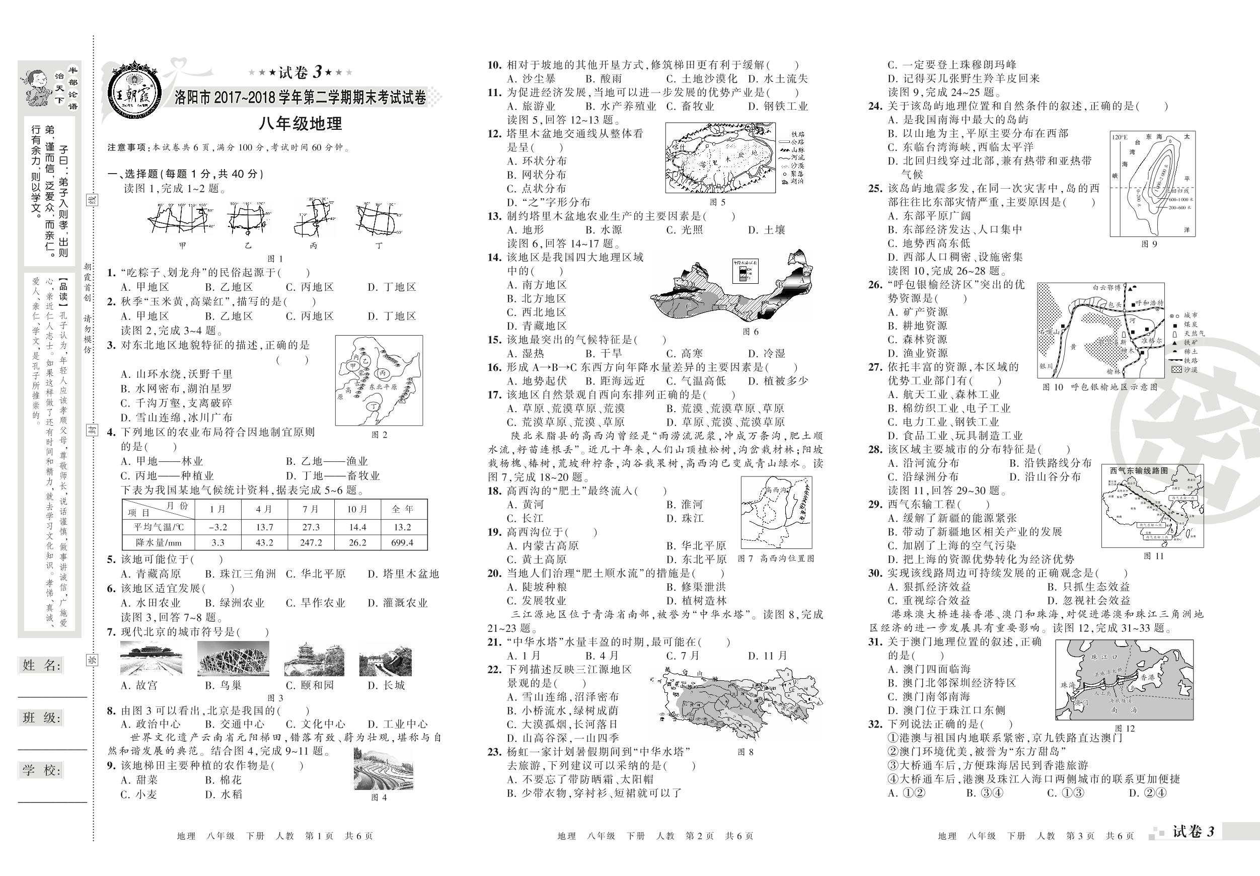 2017-2018学年第二学期洛阳市八年级地理试卷(人教版)【3】