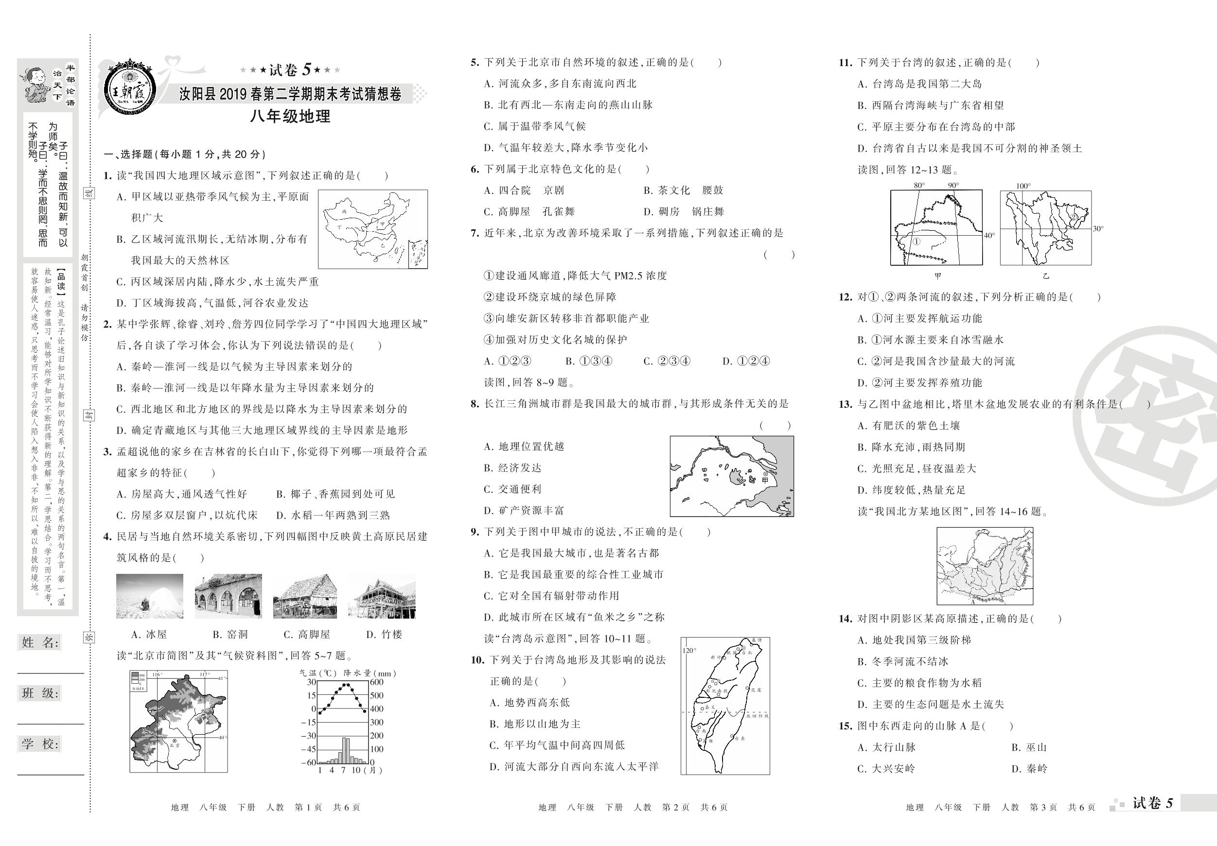 2019春第二学期洛阳市汝阳县八年级地理试卷(人教版)【5】