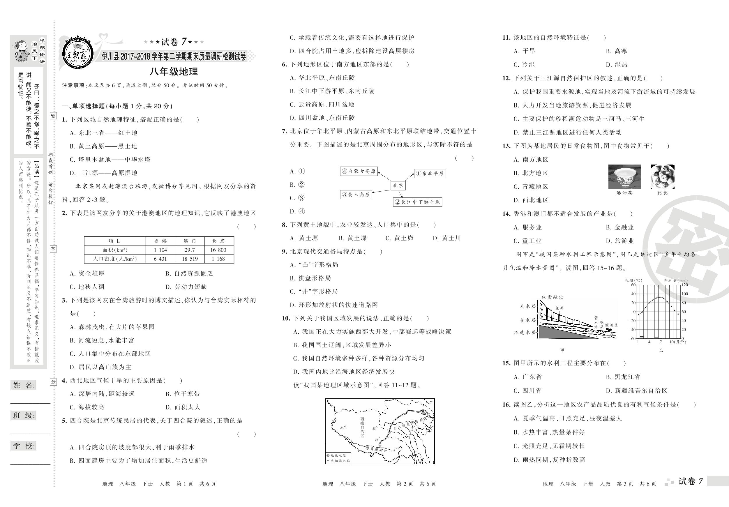 2017-2018学年第二学期洛阳市伊川县八年级地理试卷(人教版)【7】