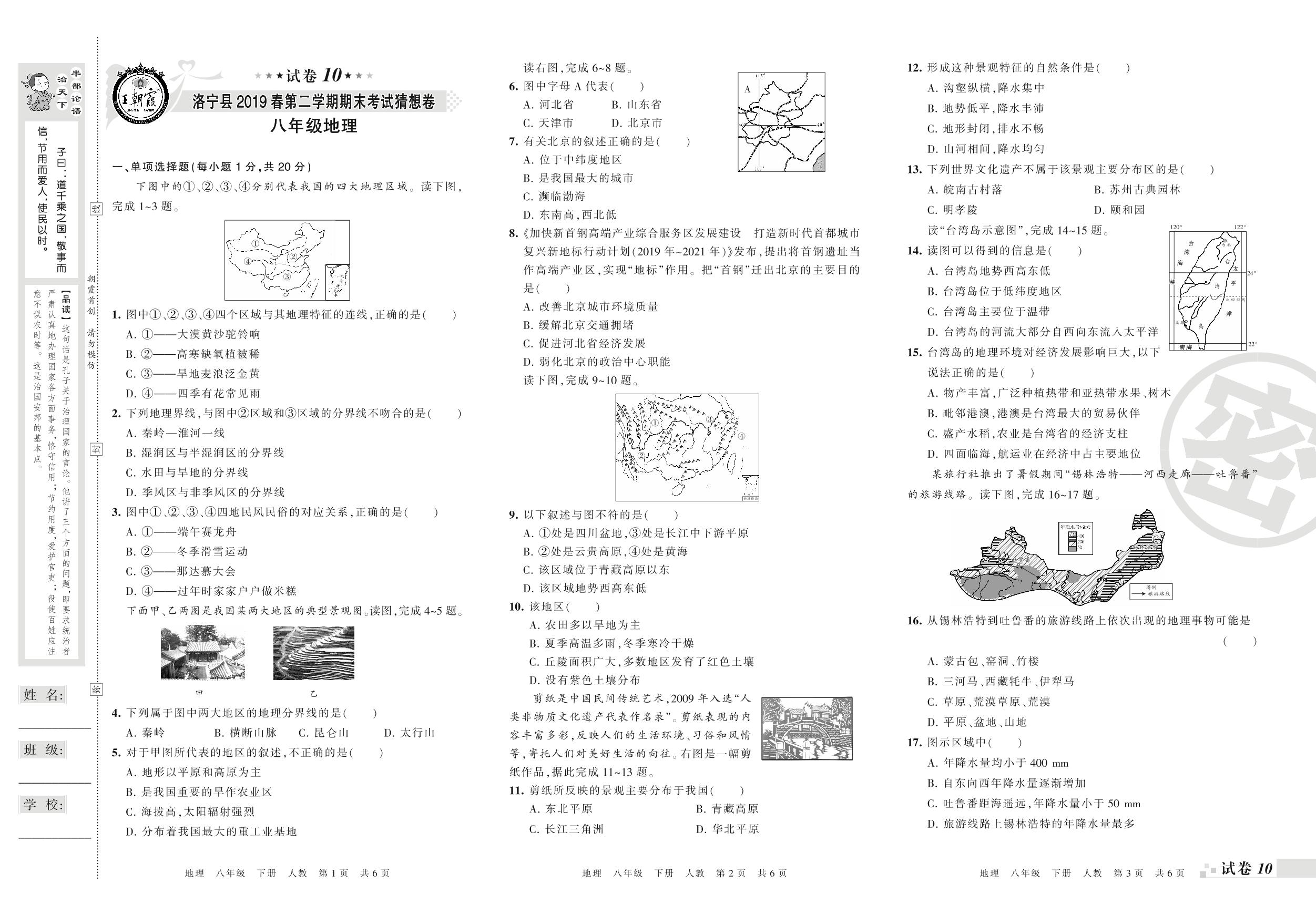 2019春第二学期洛阳市洛宁县八年级地理试卷(人教版)【10】
