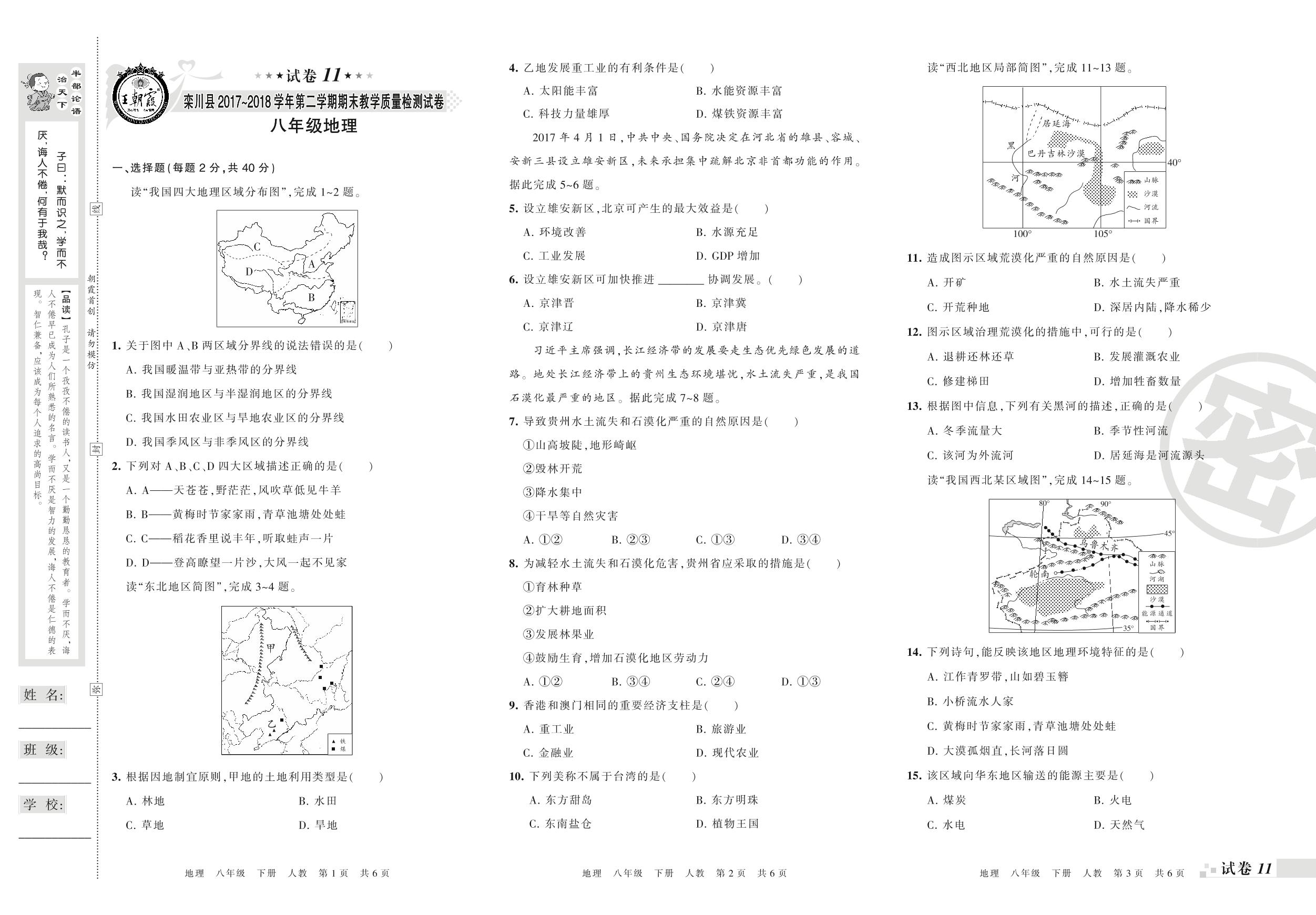 2017-2018学年第二学期洛阳市栾川县八年级地理试卷(人教版)【11】