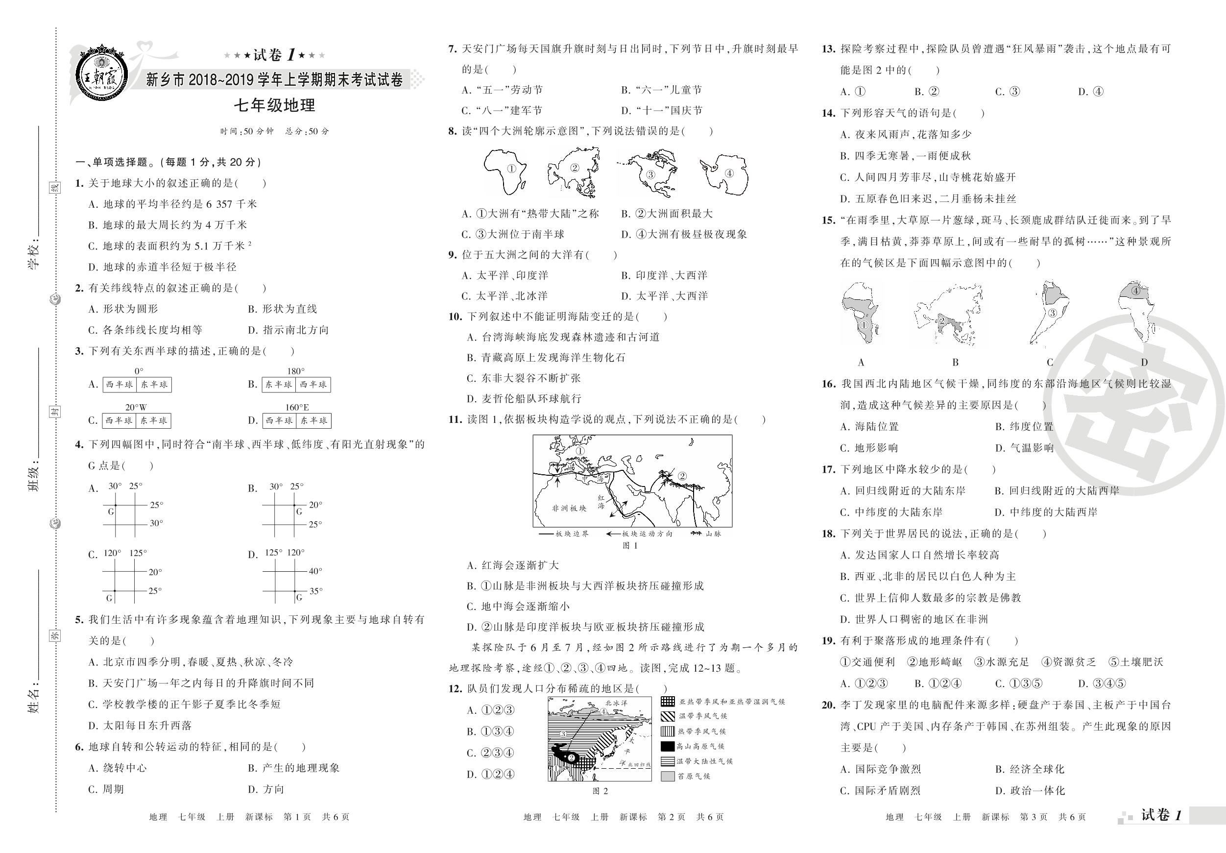 2018-2019学年第一学期新乡市七年级地理试卷(新课版)【1】