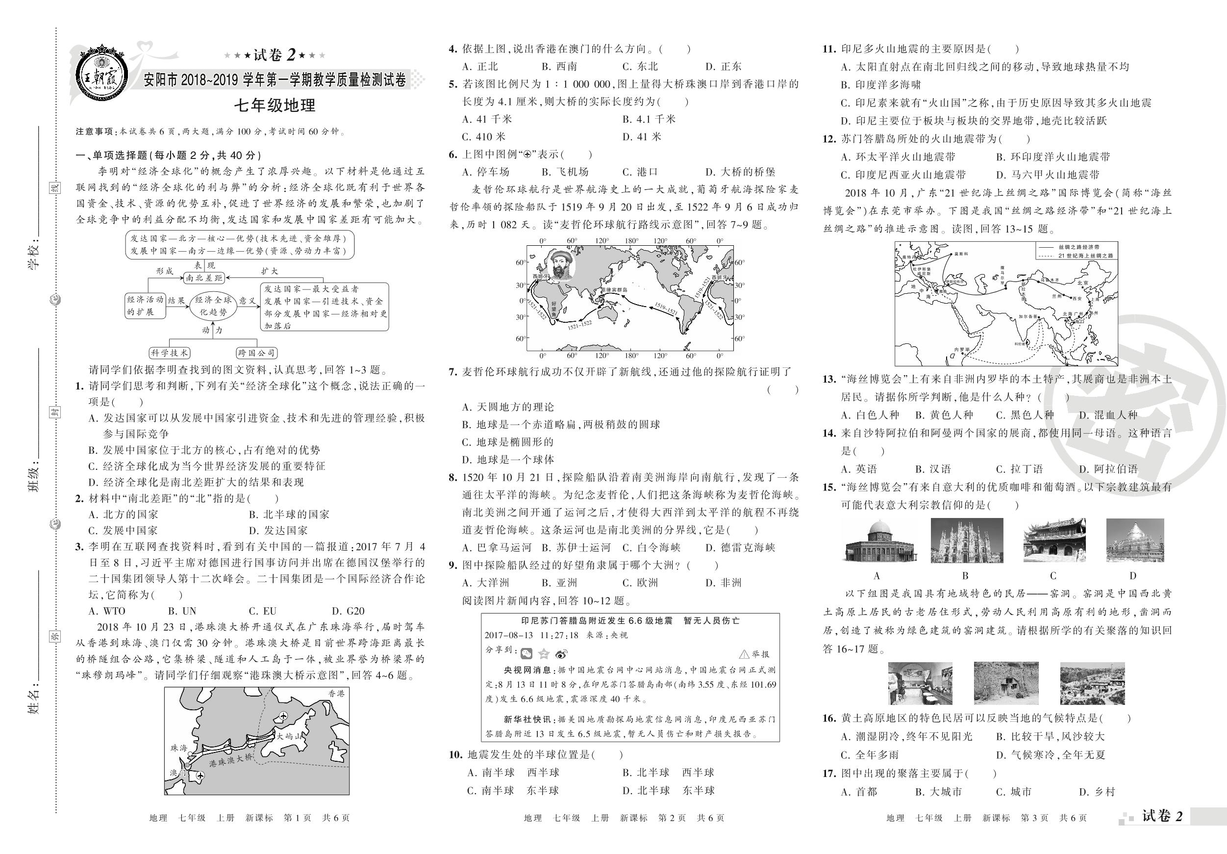 2018-2019学年第一学期安阳市七年级地理试卷(新课版)【2】