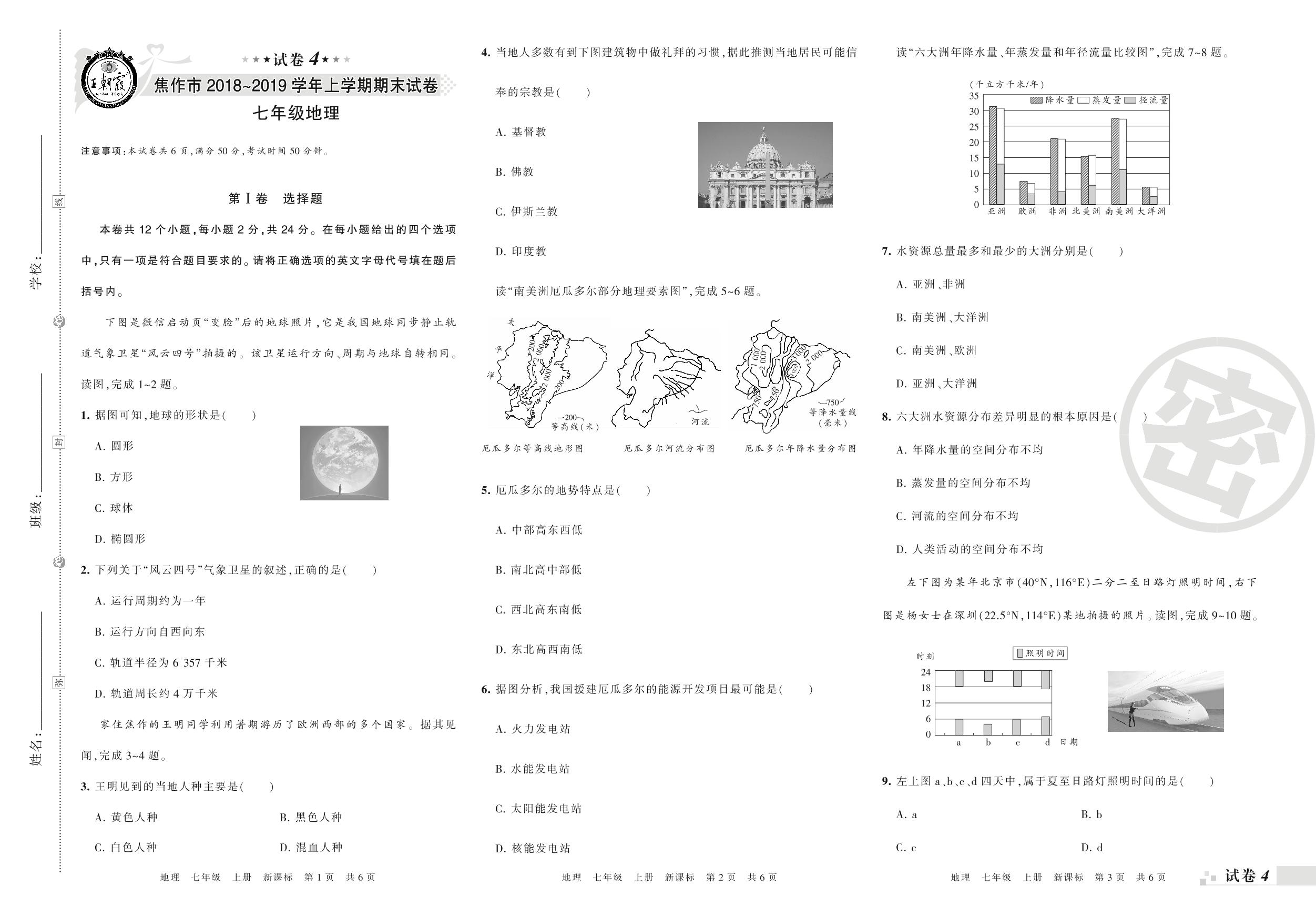 2018-2019学年第一学期焦作市七年级地理试卷(新课版)【4】