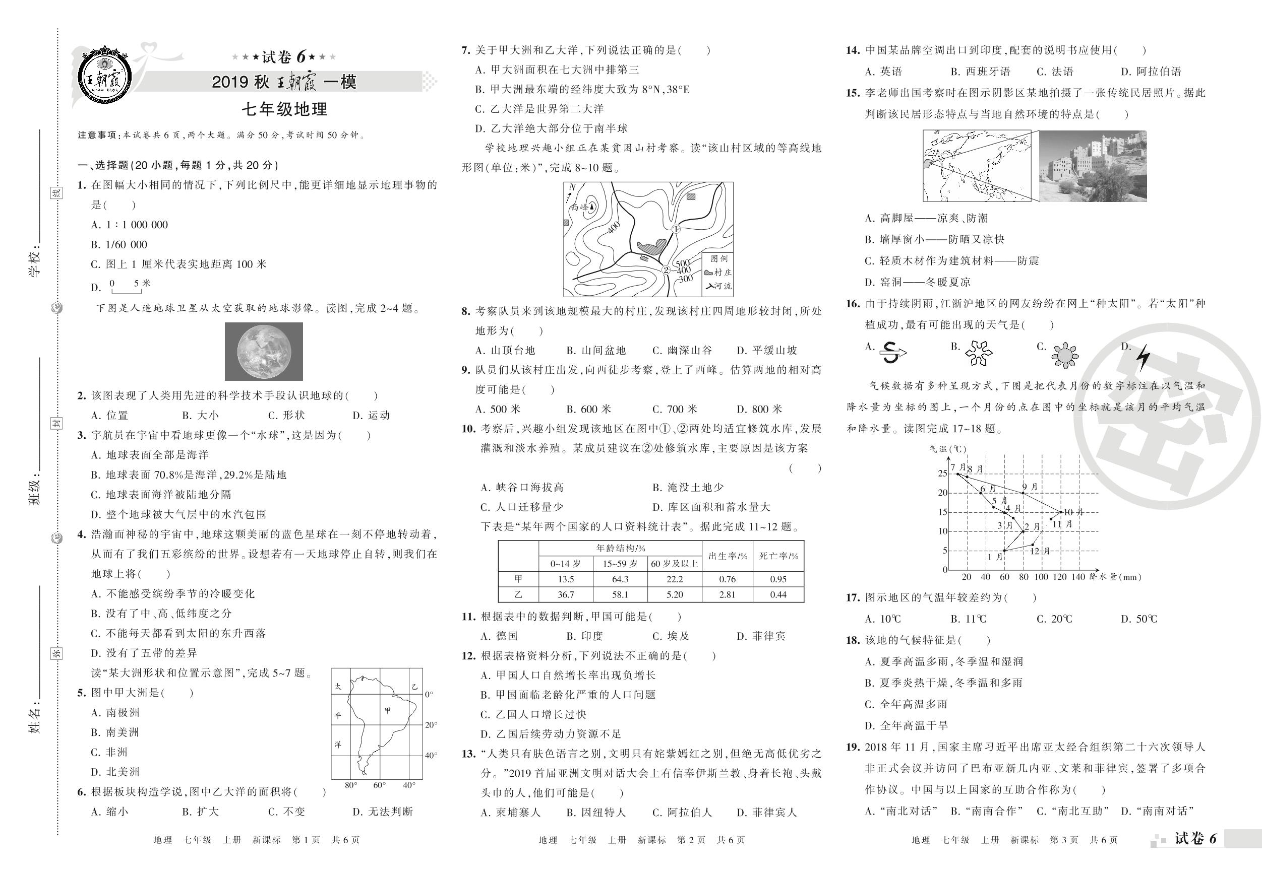 王朝霞期末模拟卷七年级上册地理(新课版)【6】