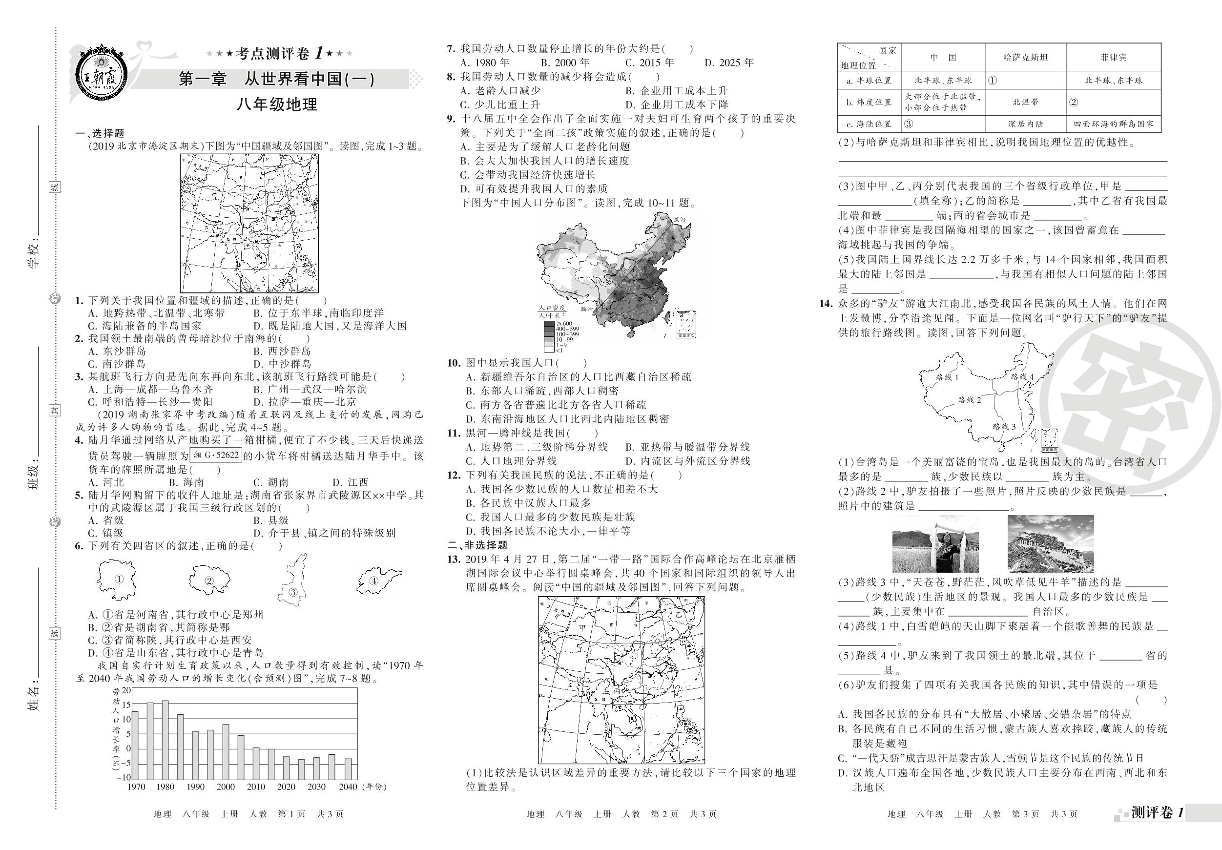 王朝霞期末测评卷——第一章 从世界看中国八年级上册地理(人教版)【0】