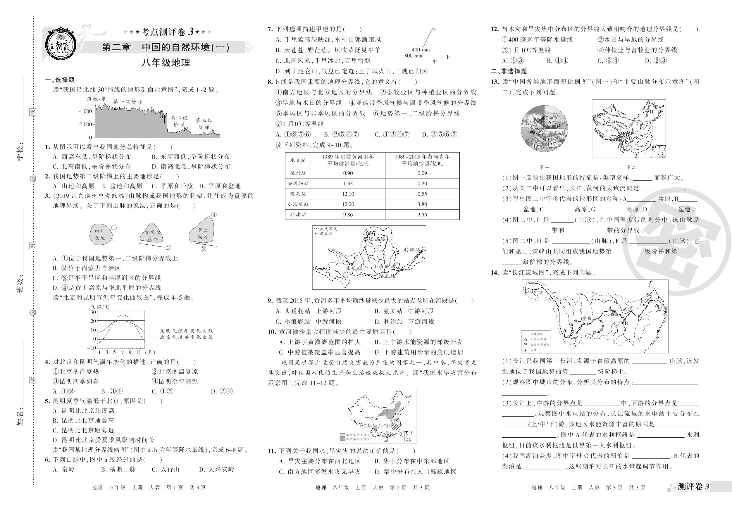 王朝霞期末测评卷——第二章 中国的自然环境八年级上册地理(人教版)【0】