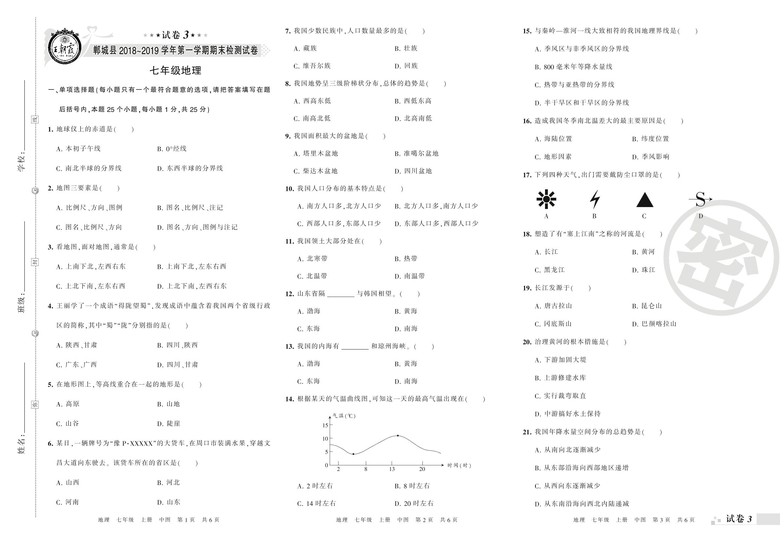 2018-2019学年第一学期周口市郸城县七年级地理试卷(中图版)【3】