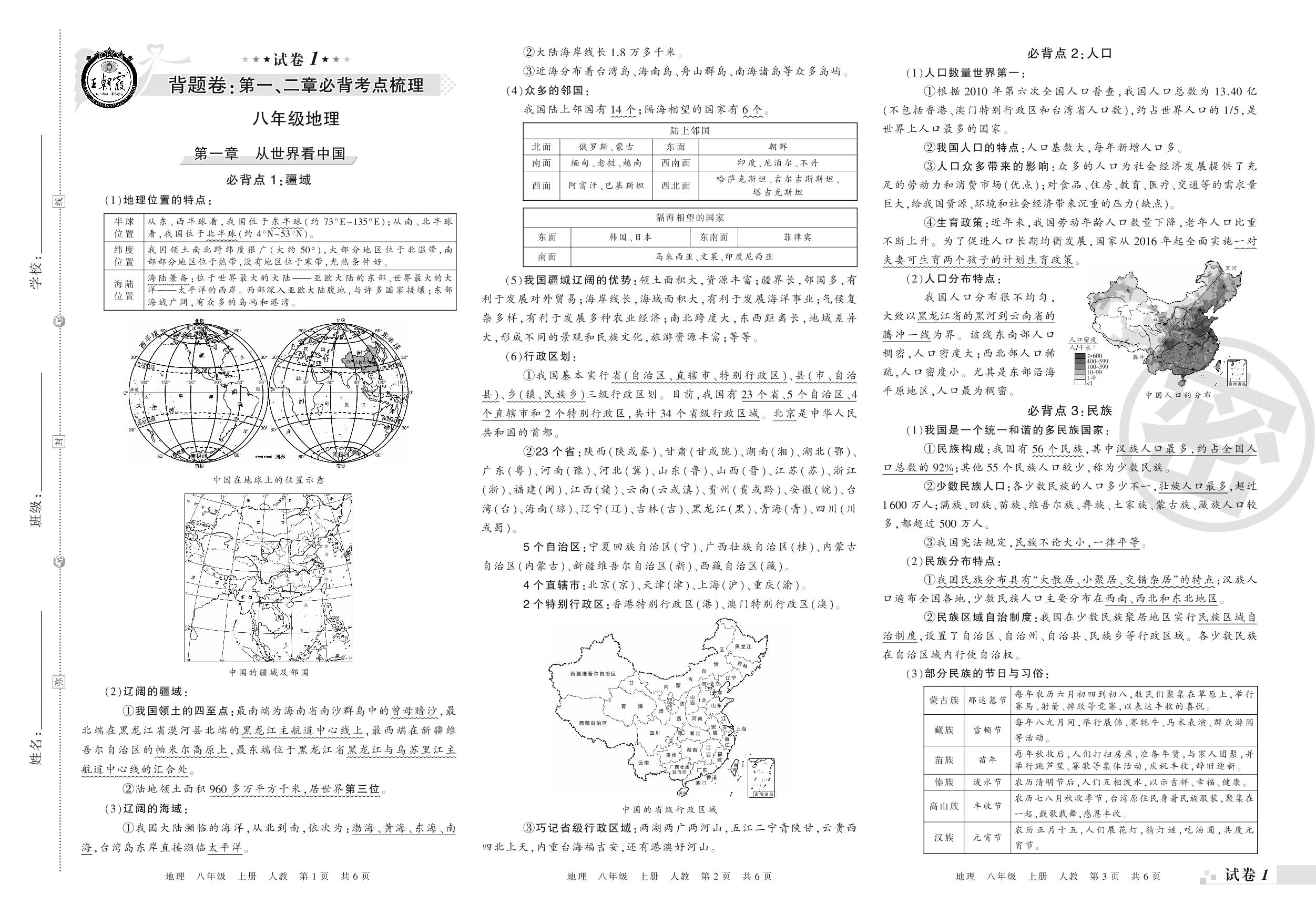 王朝霞期末背题卷——第一、二章必背考点梳理八年级上册地理(人教版)【1】