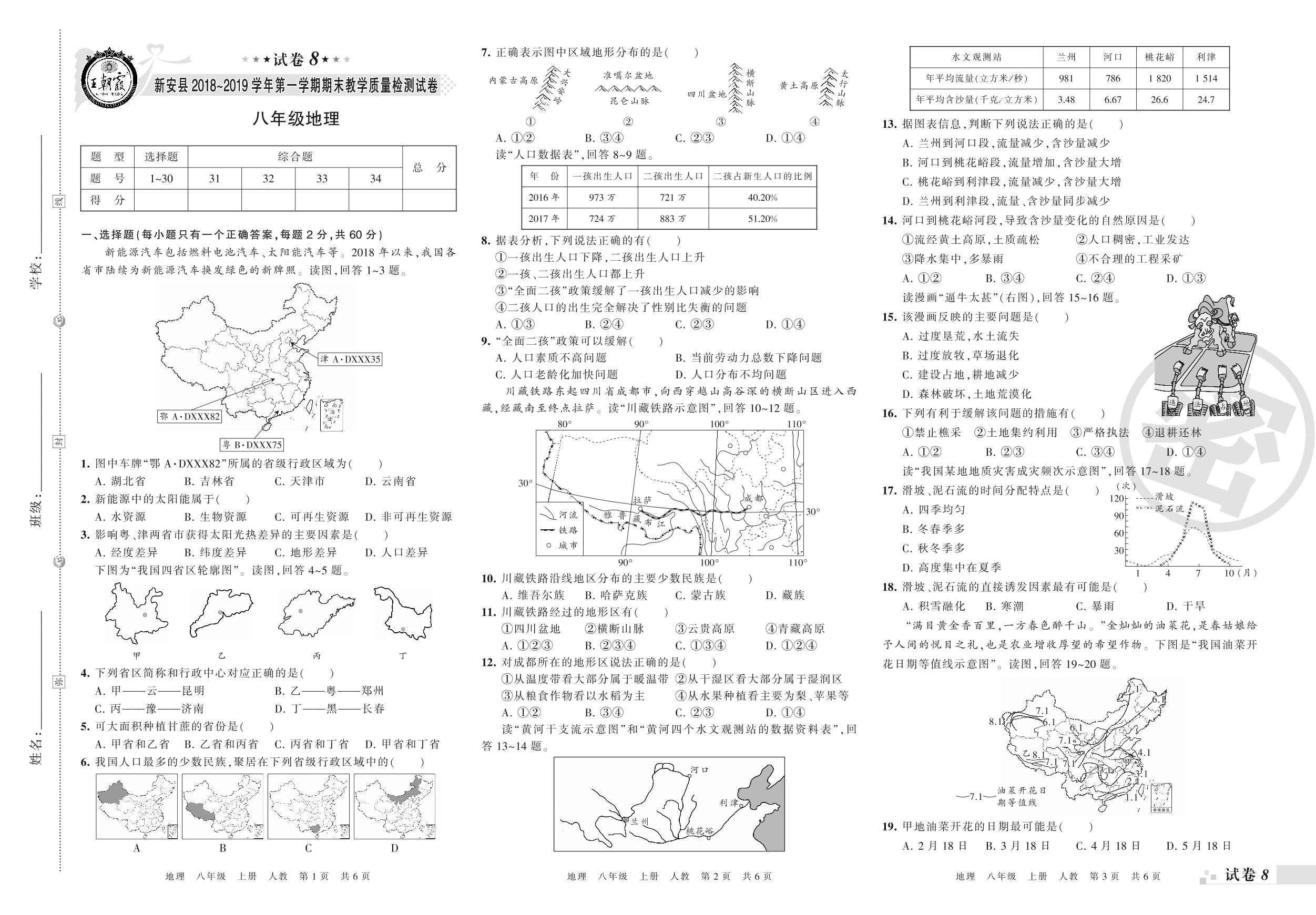 2018-2019学年第一学期洛阳市新安县八年级地理试卷(人教版)【8】