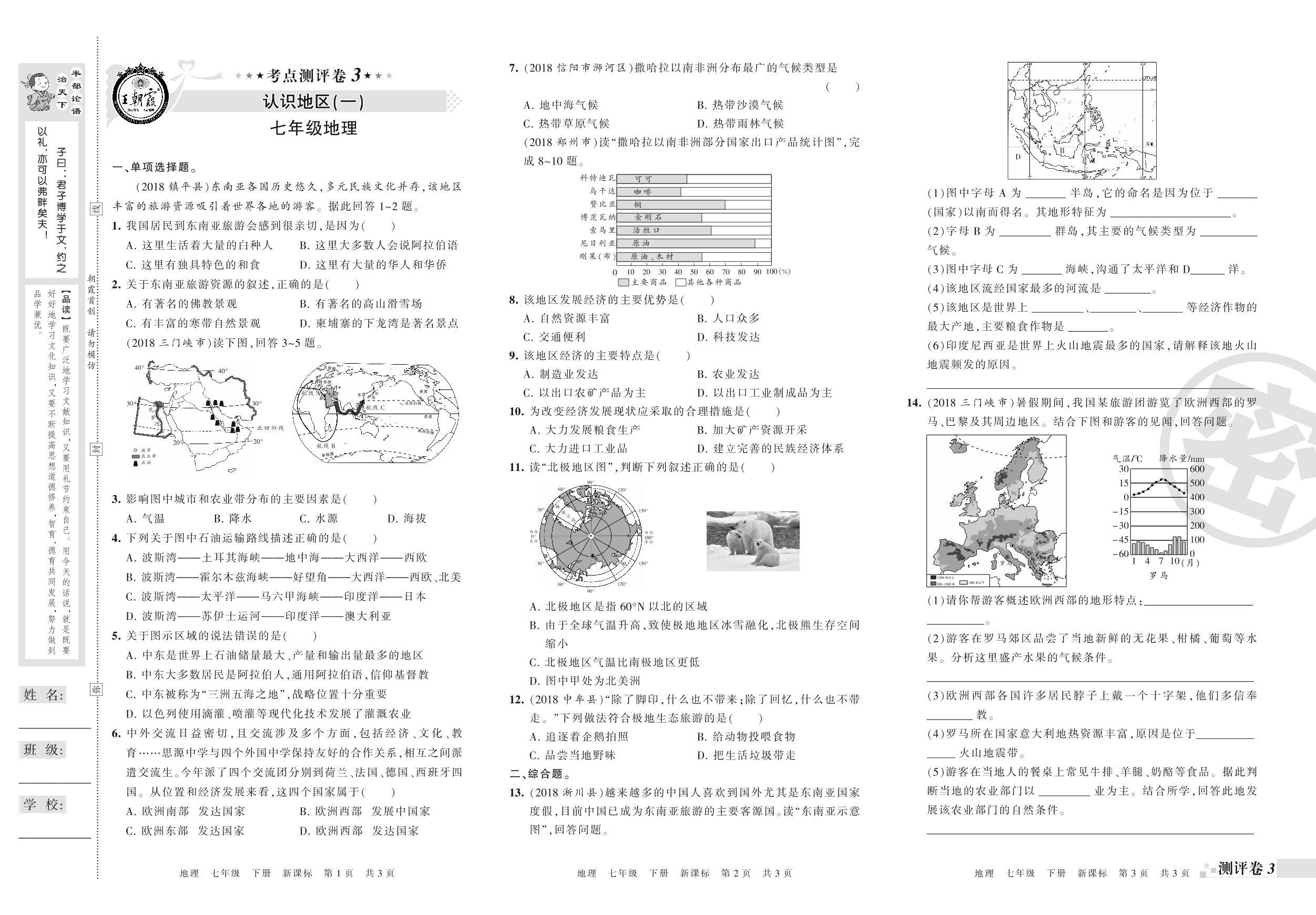 王朝霞期末测评卷——认识地区(一)、认识地区(二)七年级下册地理(新课版)【0】