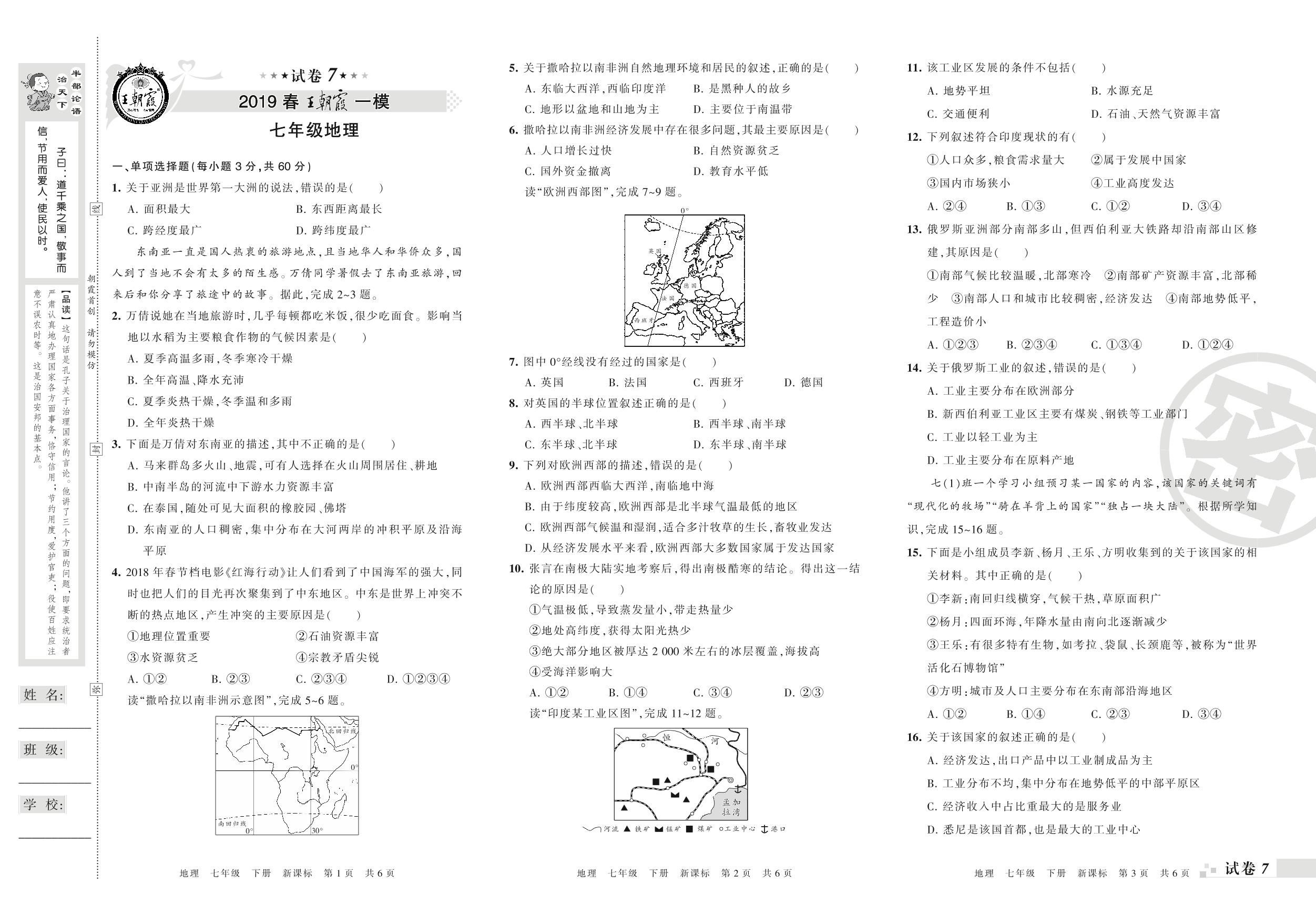 王朝霞期末模拟卷七年级下册地理(新课版)_R210810144013【7】