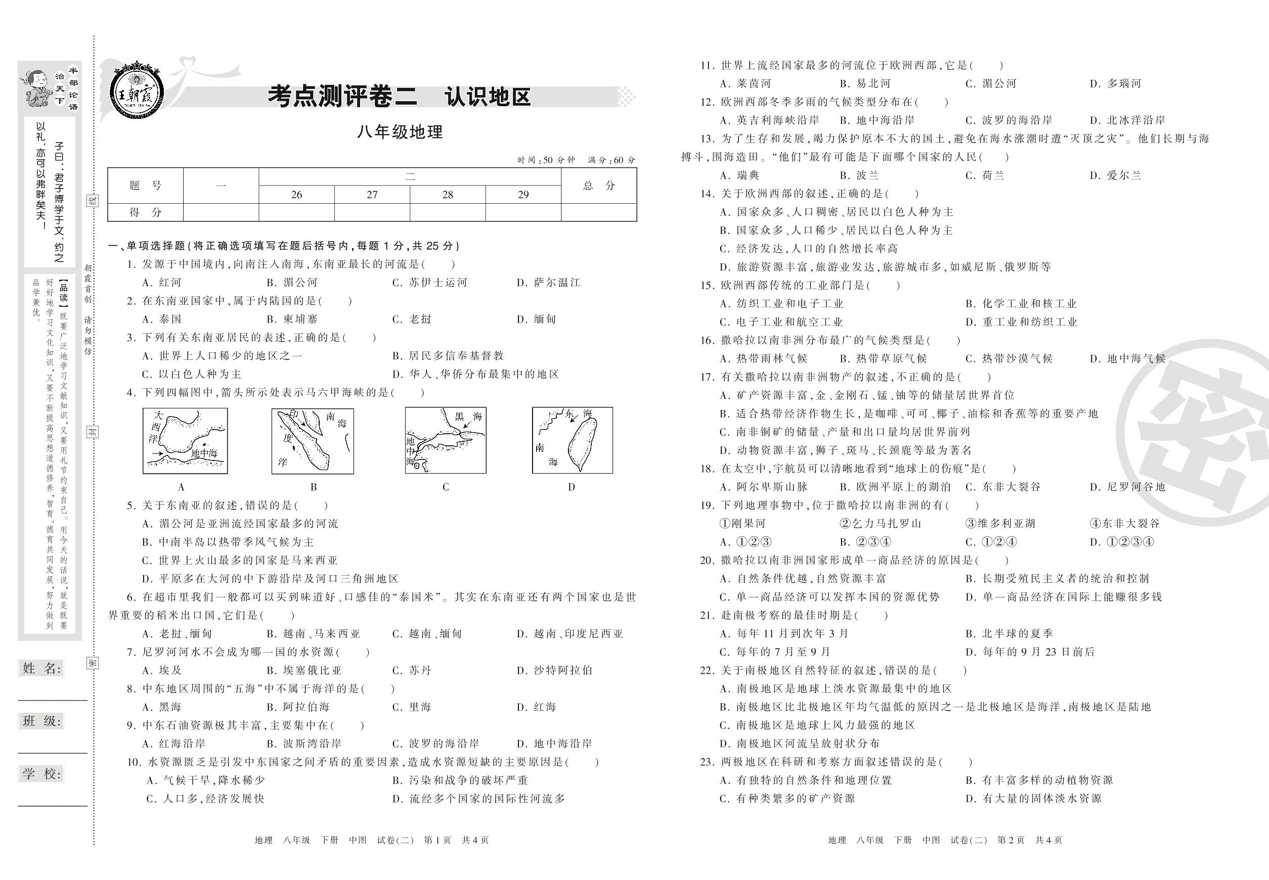 王朝霞期末测评卷八年级下册地理(中图版)【2】
