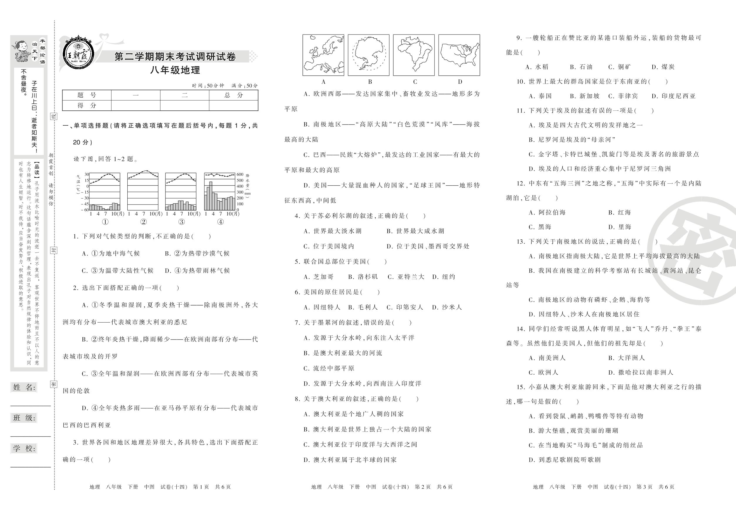 王朝霞期末调研卷八年级下册地理(中图版)【14】