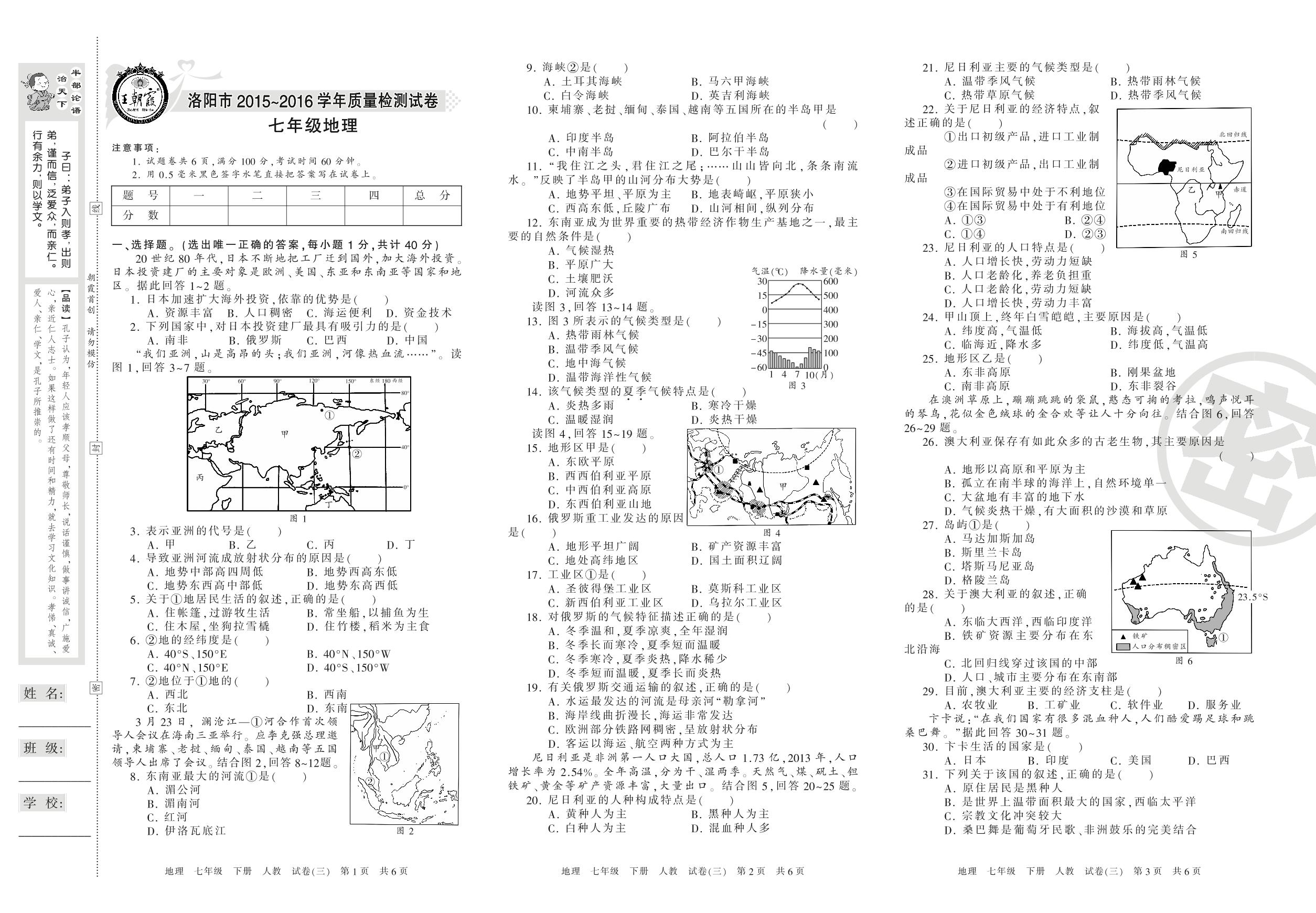 2015-2016学年第二学期洛阳市七年级地理试卷(人教版)【3】