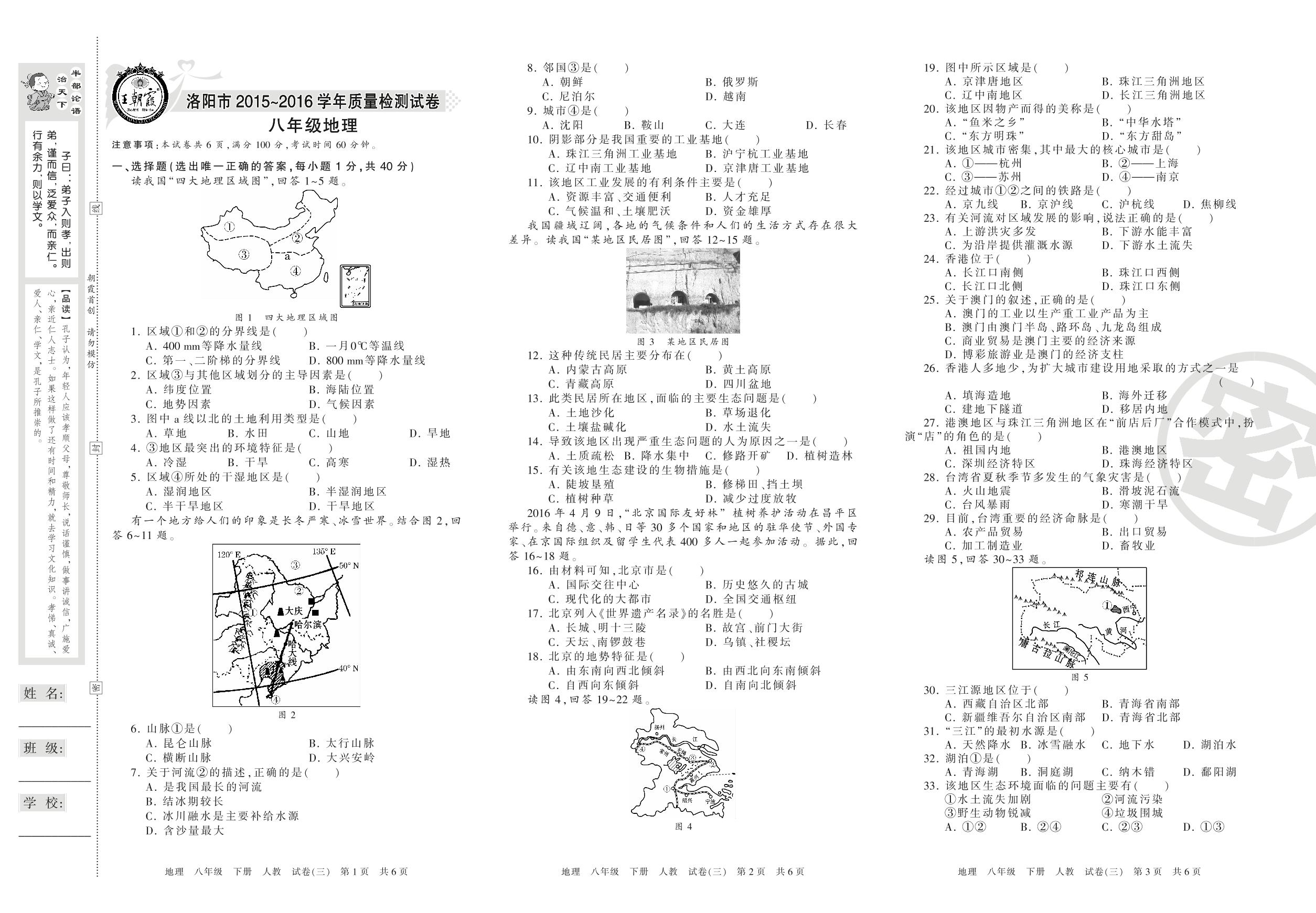 2015-2016学年第二学期洛阳市八年级地理试卷(人教版)【3】