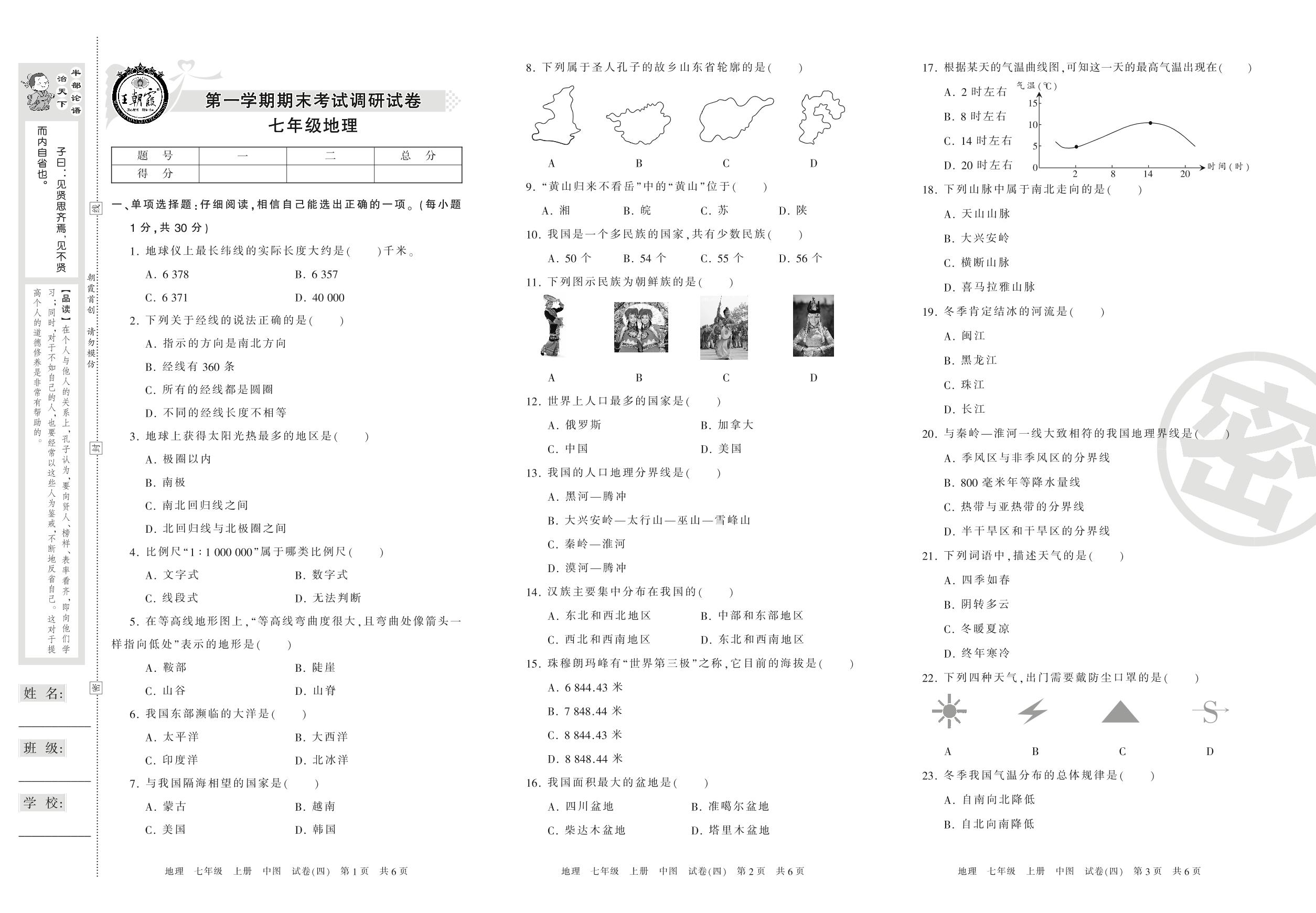 王朝霞期末调研卷七年级上册地理(中图版)【4】