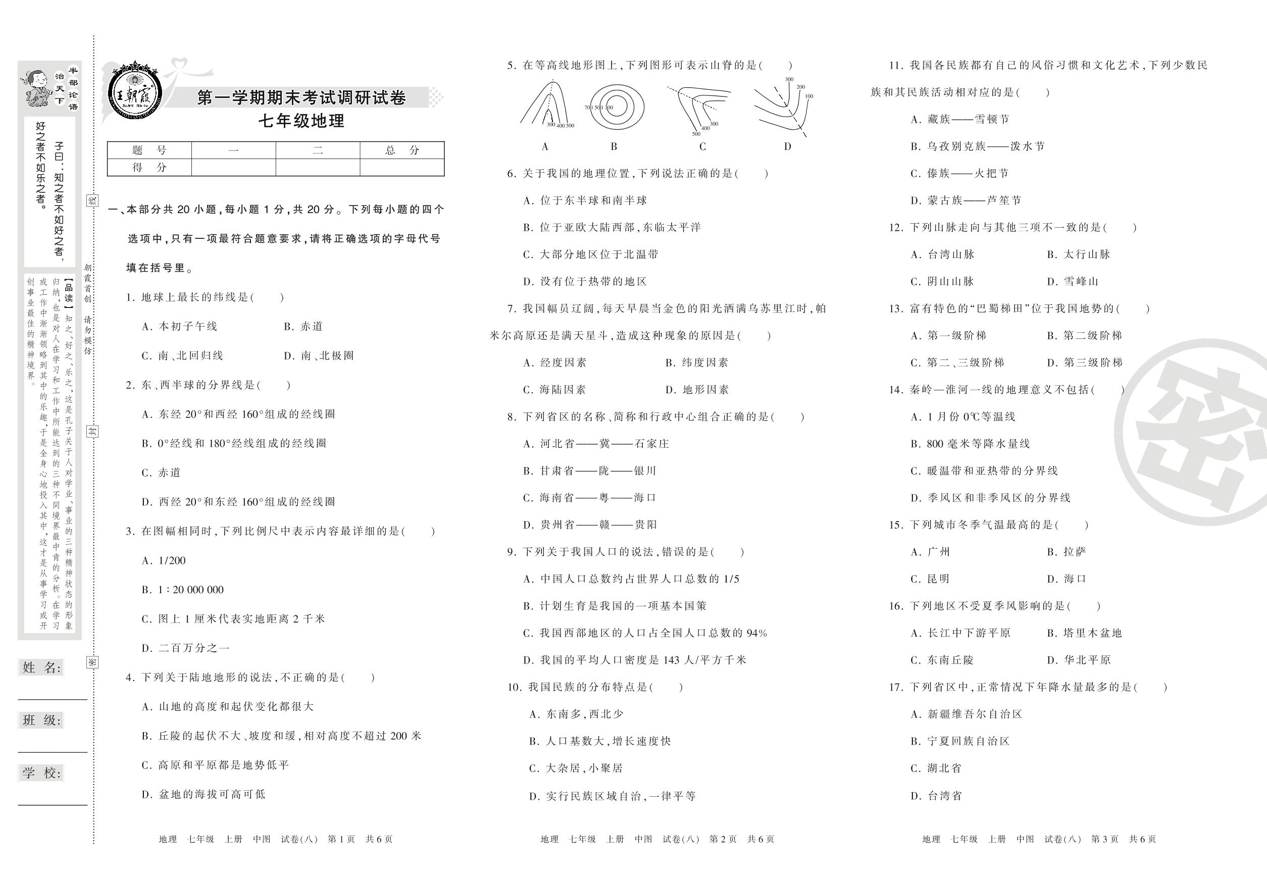王朝霞期末调研卷七年级上册地理(中图版)【8】