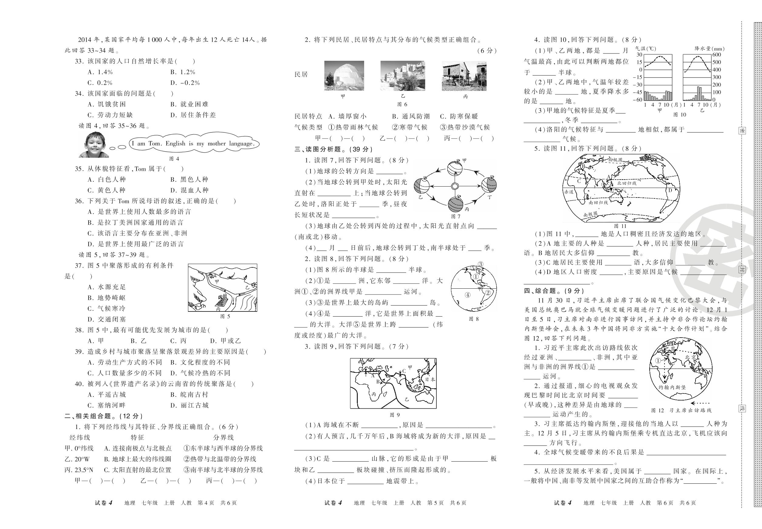 七年级地理人教版上册期末卷