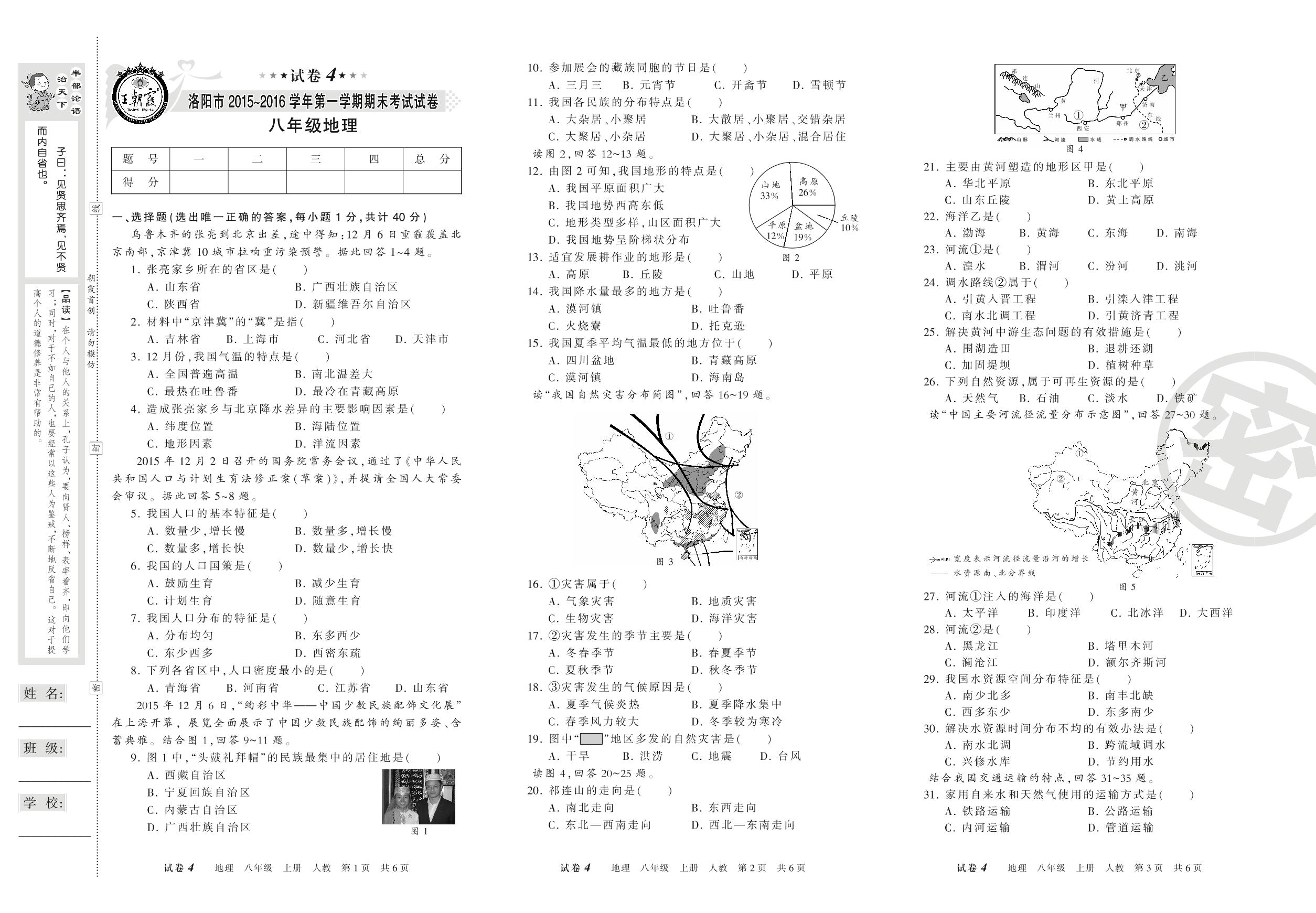 2015-2016学年第一学期洛阳市八年级地理试卷(人教版)【4】
