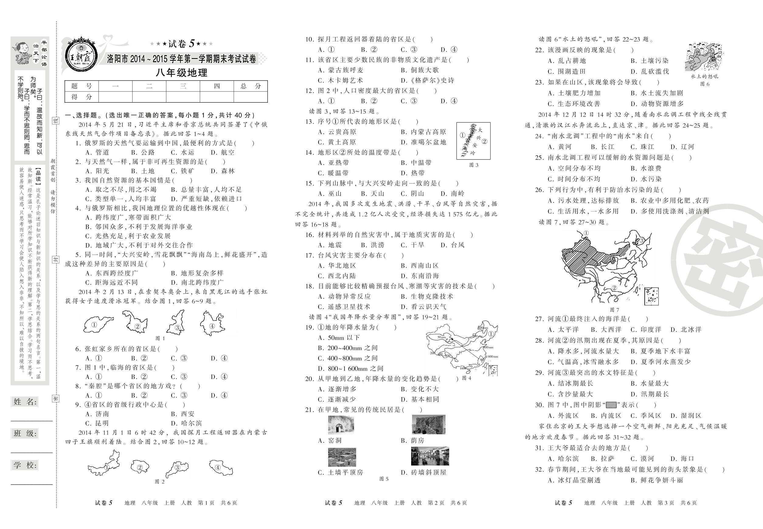 2014-2015学年第一学期洛阳市八年级地理试卷(人教版)【5】