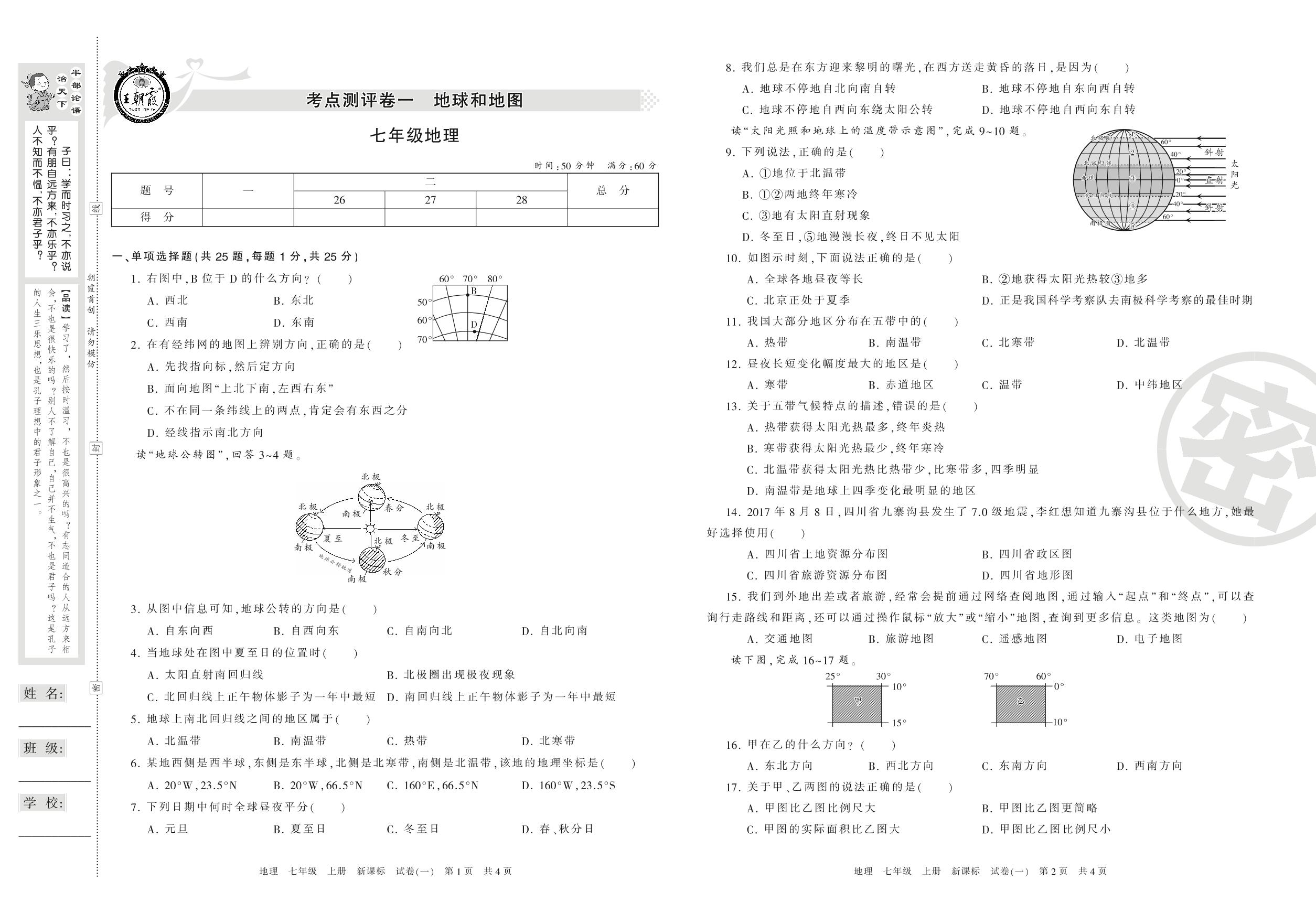 王朝霞期末测评卷七年级上册地理(新课版)【1】