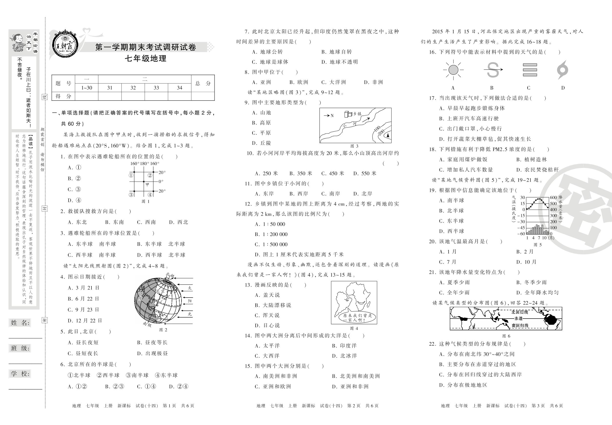 王朝霞期末调研卷七年级上册地理(新课版)【14】