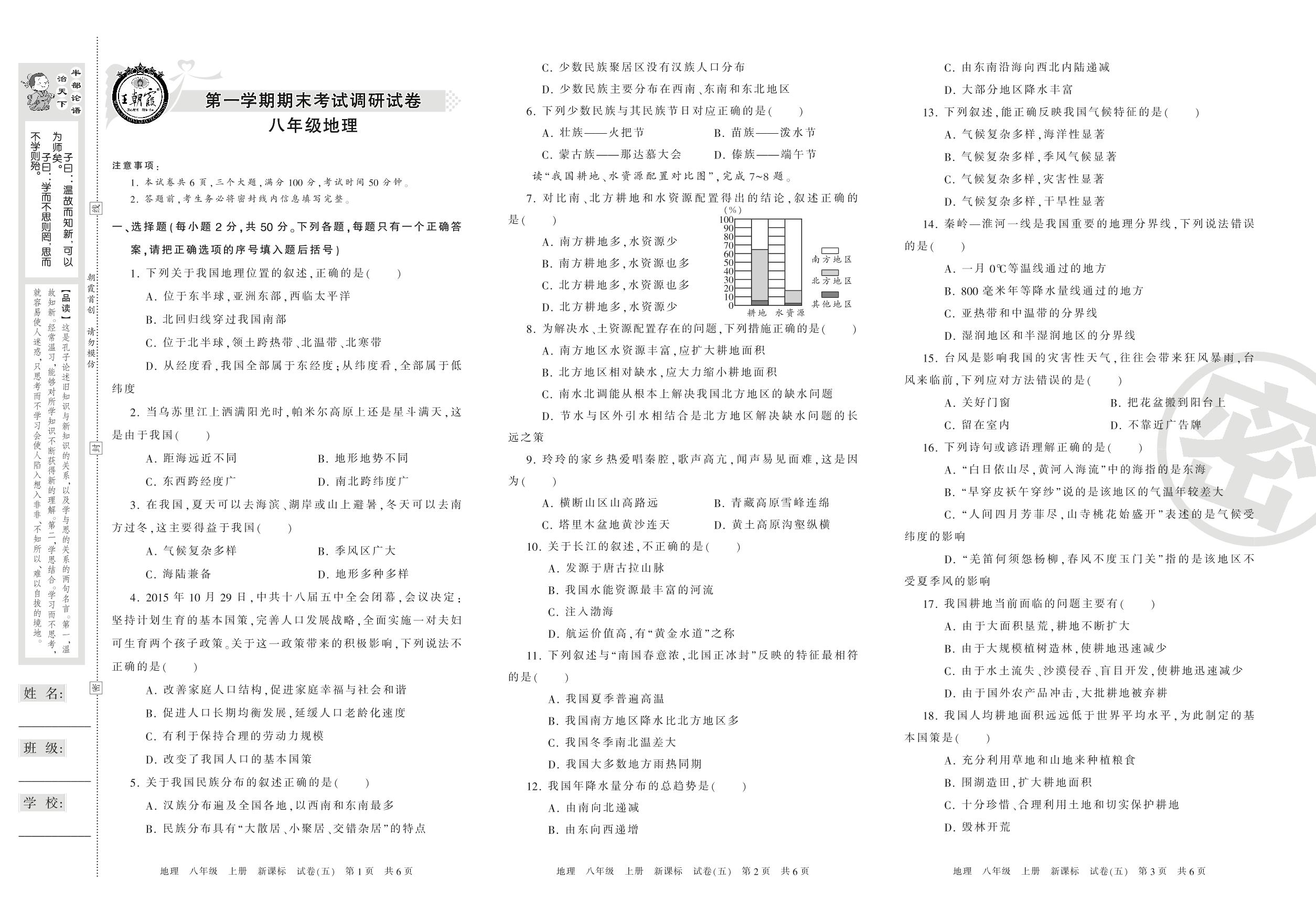 王朝霞期末调研卷八年级上册地理(新课版)【5】