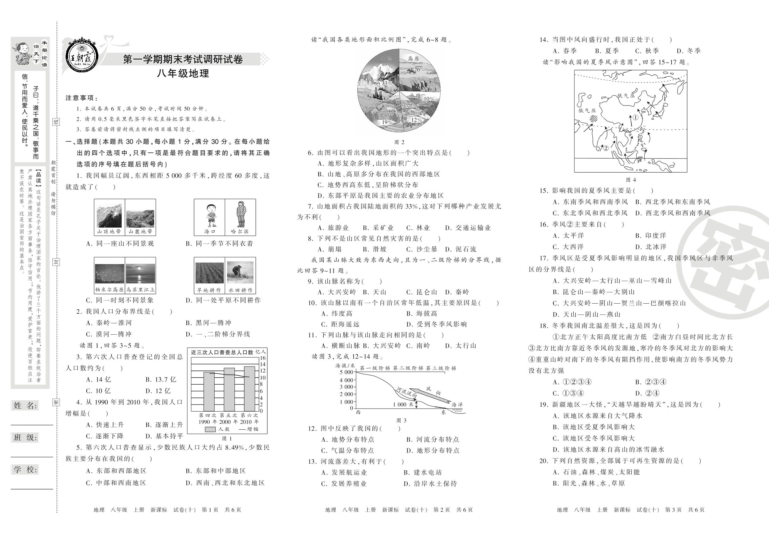 王朝霞期末调研卷八年级上册地理(新课版)【10】
