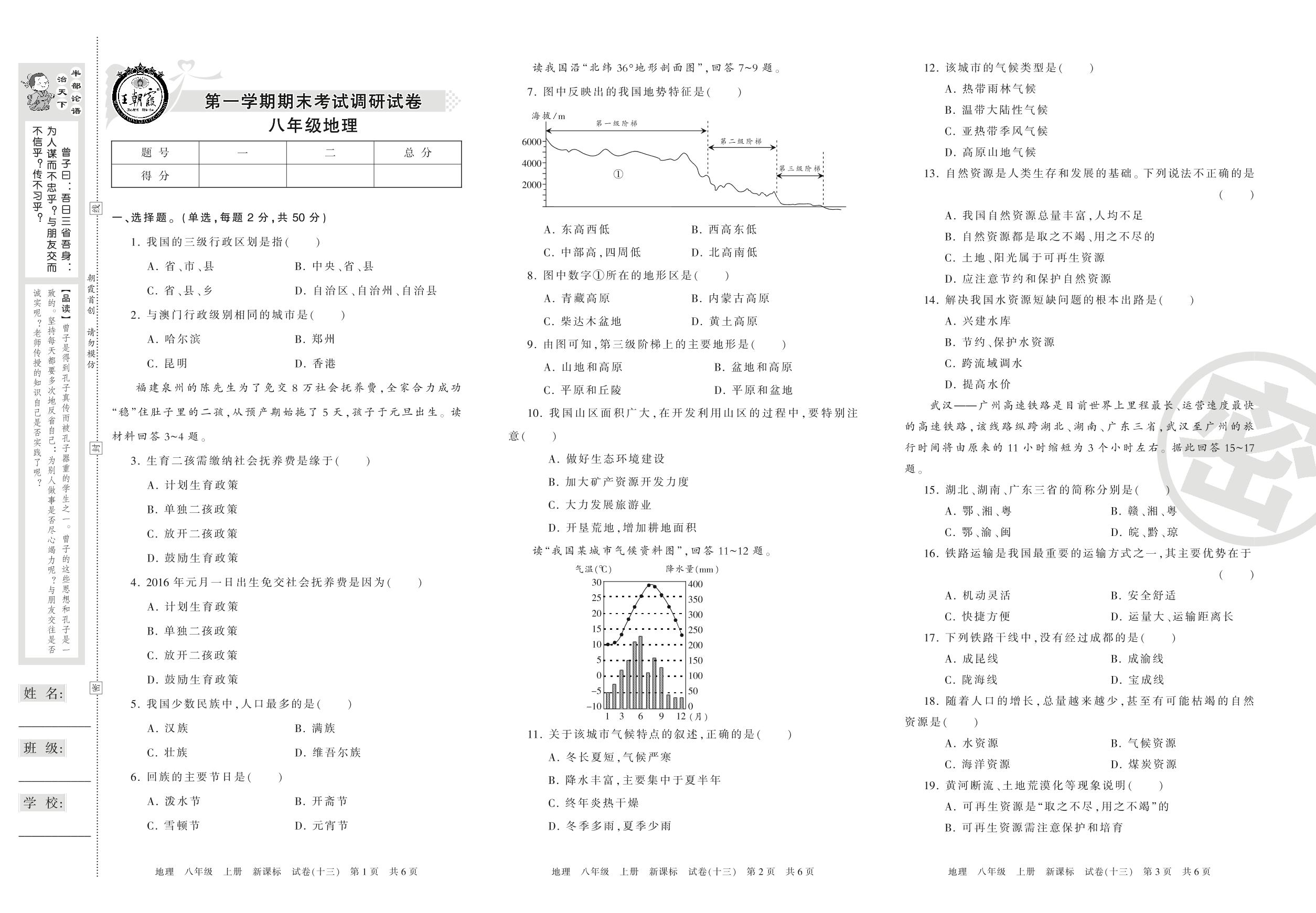 王朝霞期末调研卷八年级上册地理(新课版)【13】