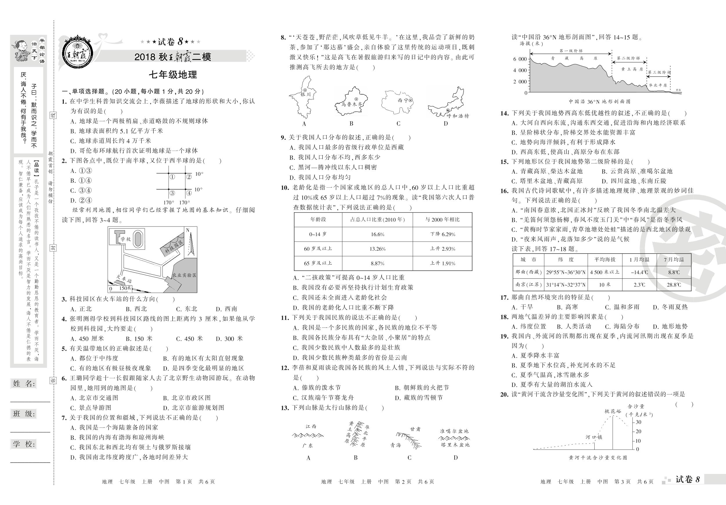 王朝霞期末模拟卷七年级上册地理(中图版)_R210810150346【8】