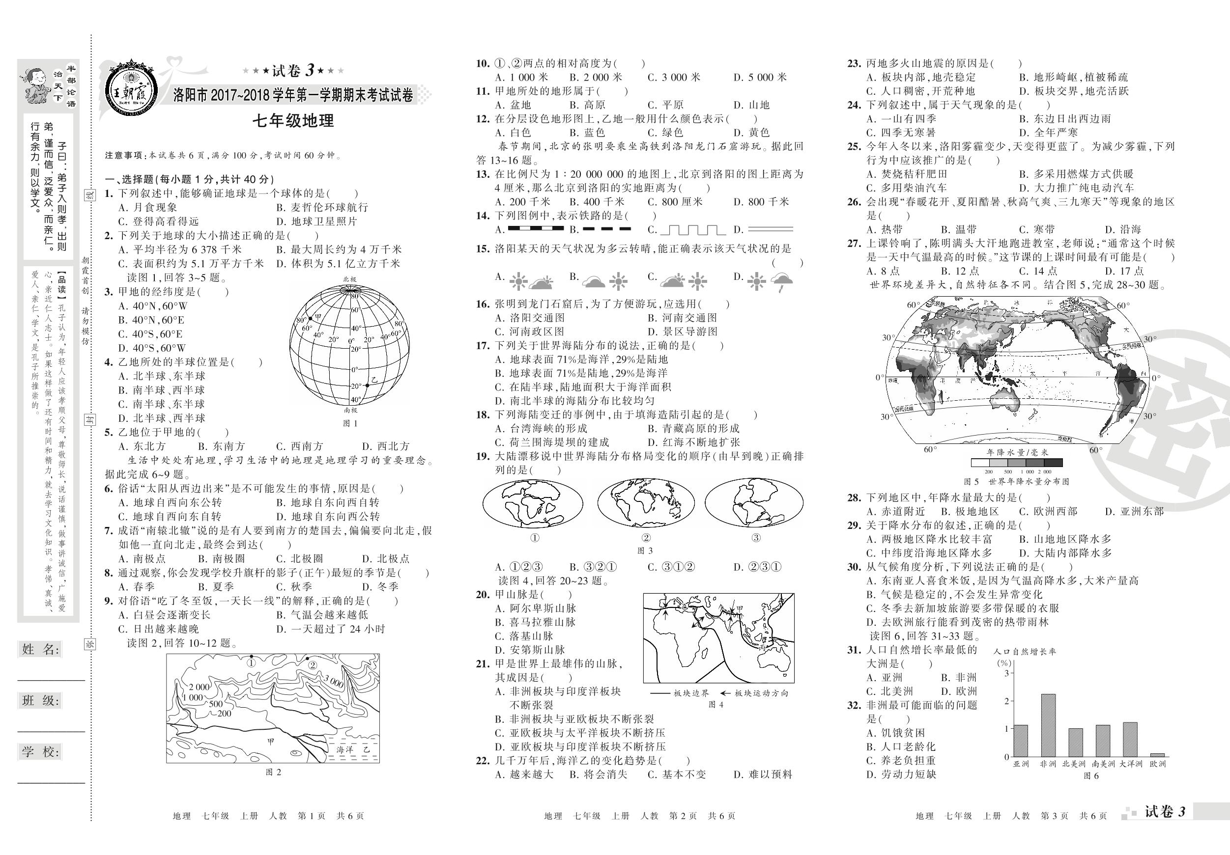2017-2018学年第一学期洛阳市七年级地理试卷(人教版)【3】