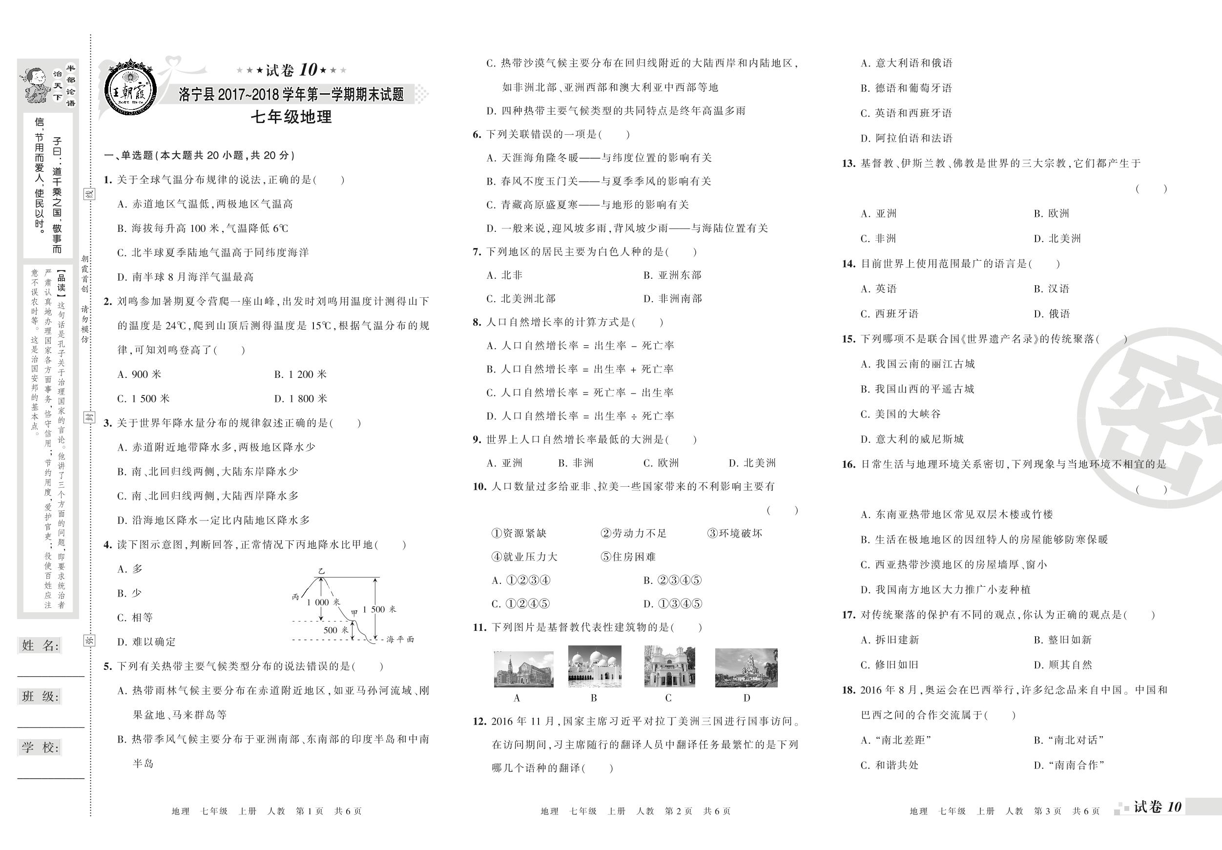 2017-2018学年第一学期洛阳市洛宁县七年级地理试卷(人教版)【10】