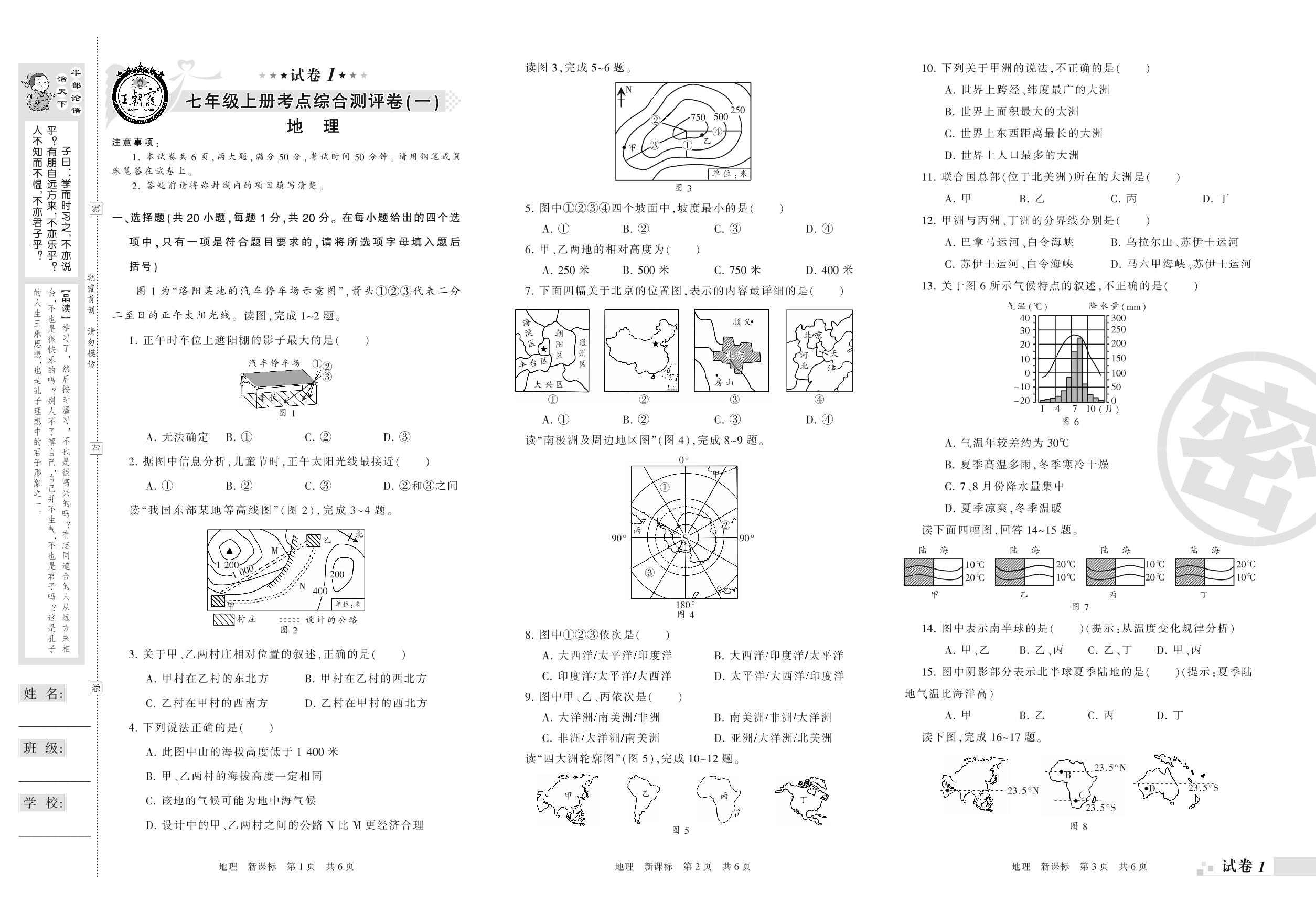 王朝霞期末测评卷——考点综合测评卷(一)七年级上册地理(新课版)【1】