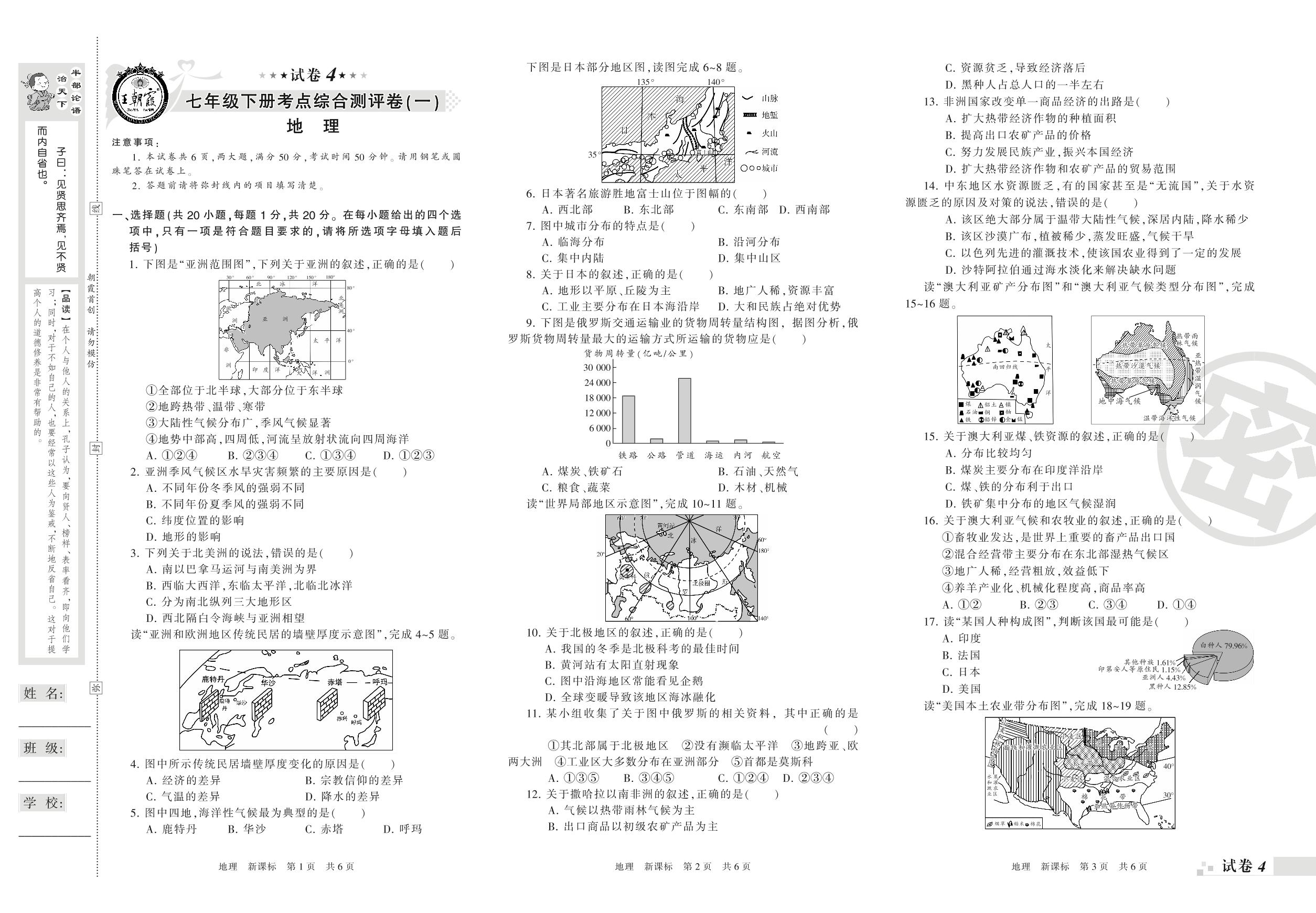 王朝霞期末测评卷——考点综合测评卷(一)七年级下册地理(新课版)【4】