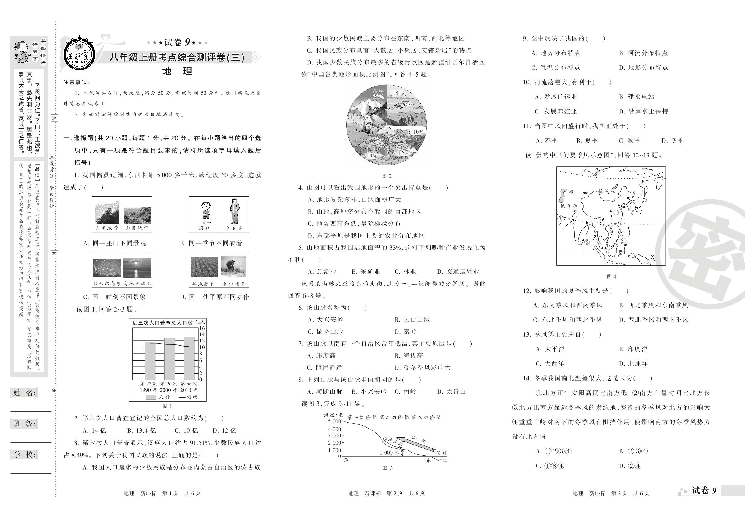 王朝霞期末测评卷——考点综合测评卷(三)八年级上册地理(新课版)【9】