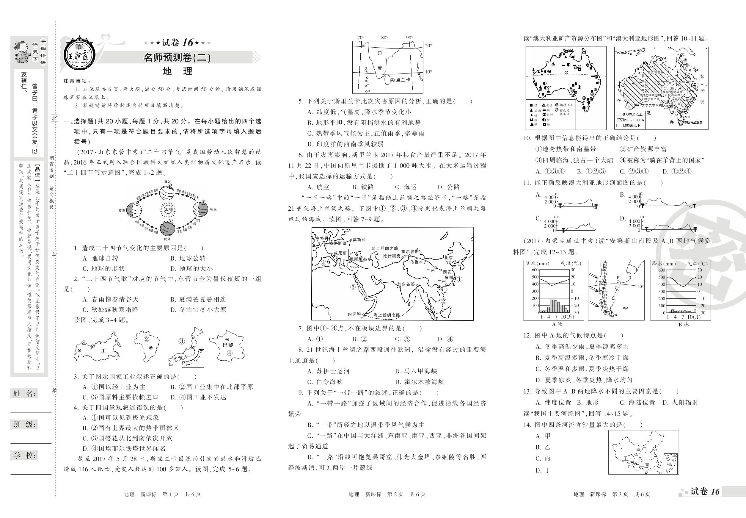王朝霞期末预测卷(二)八年级下册地理(新课版)【16】