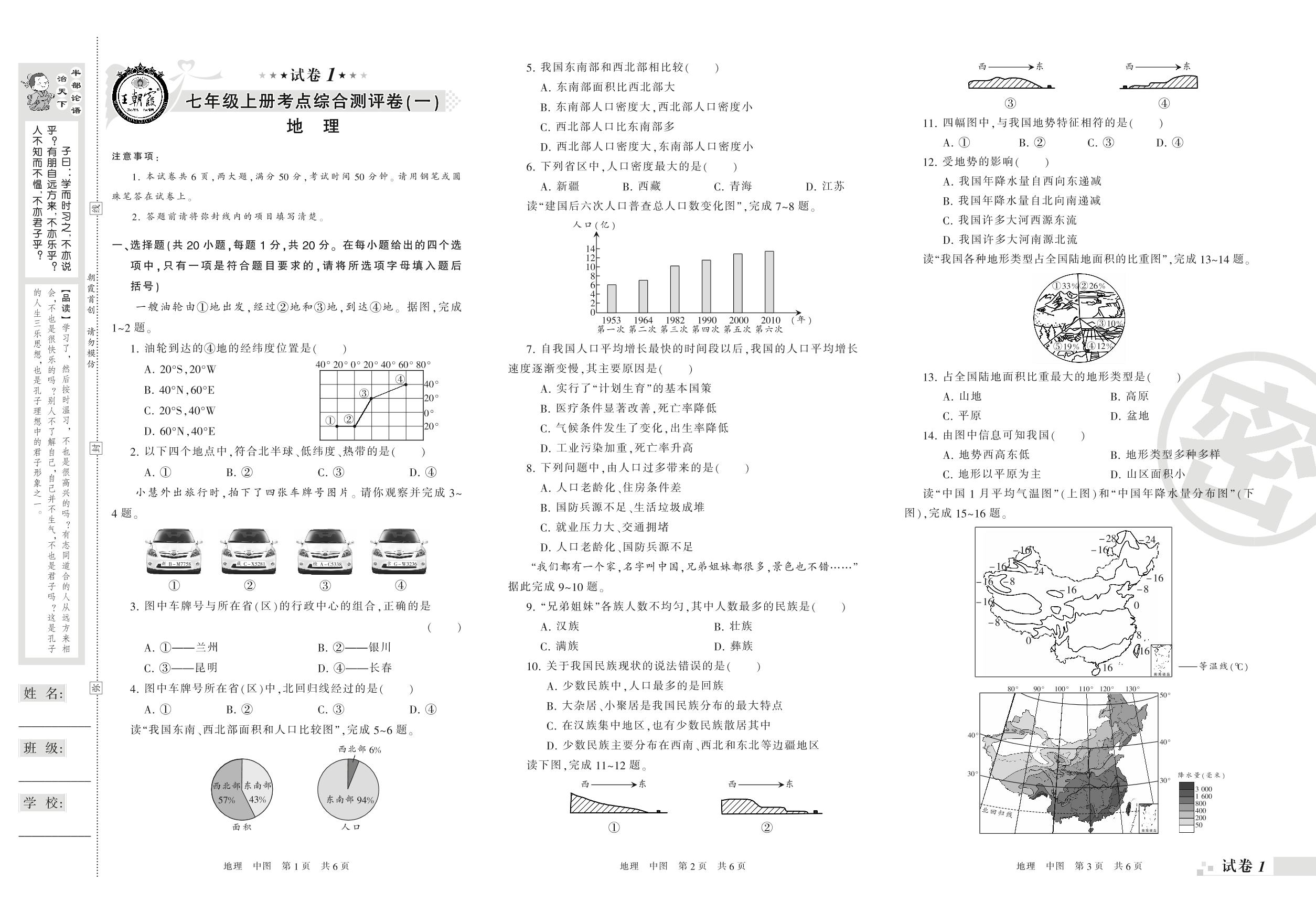 王朝霞期末测评卷——考点综合测评卷(一)七年级上册地理(中图版)【1】
