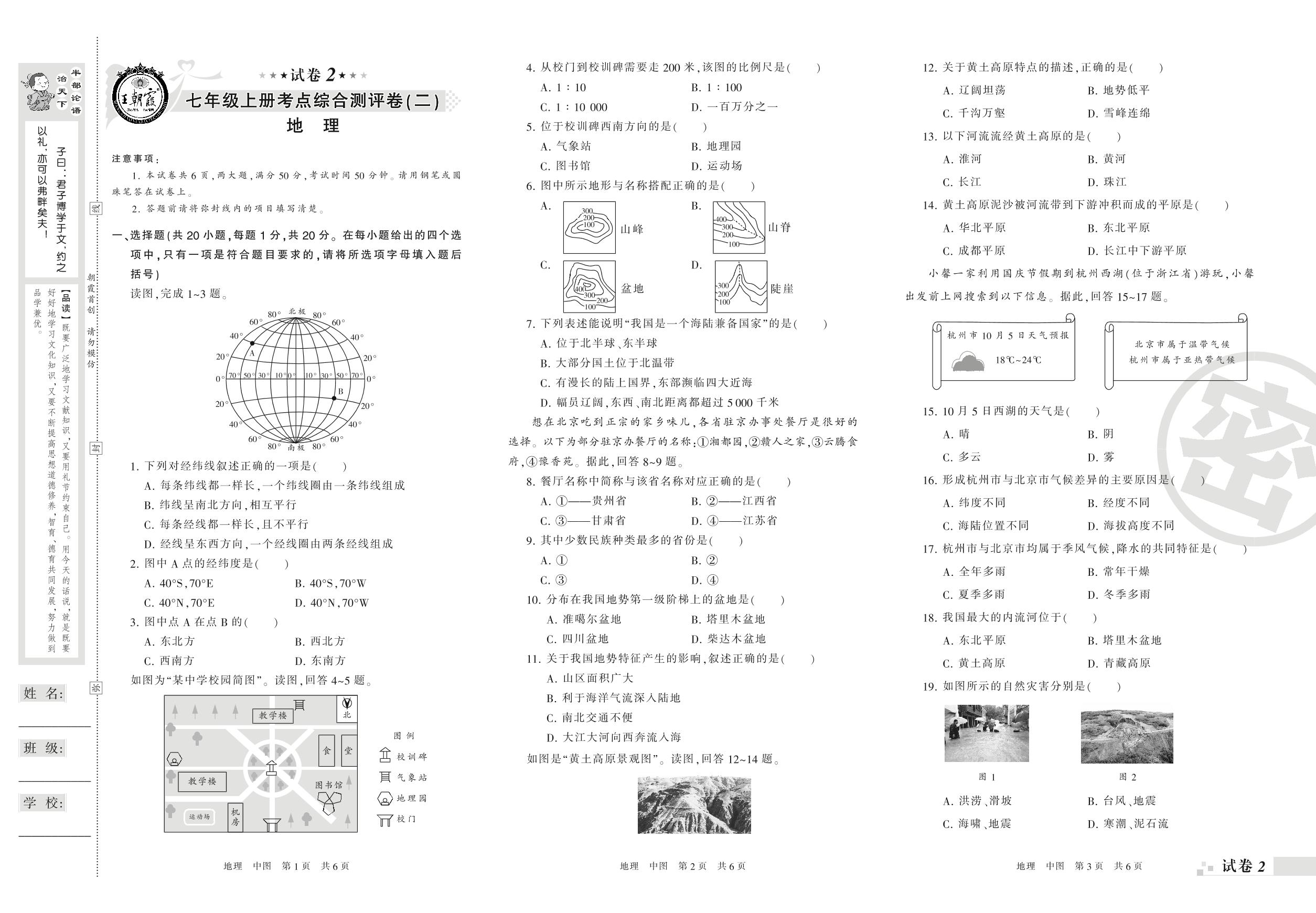 王朝霞期末测评卷——考点综合测评卷(二)七年级上册地理(中图版)【2】