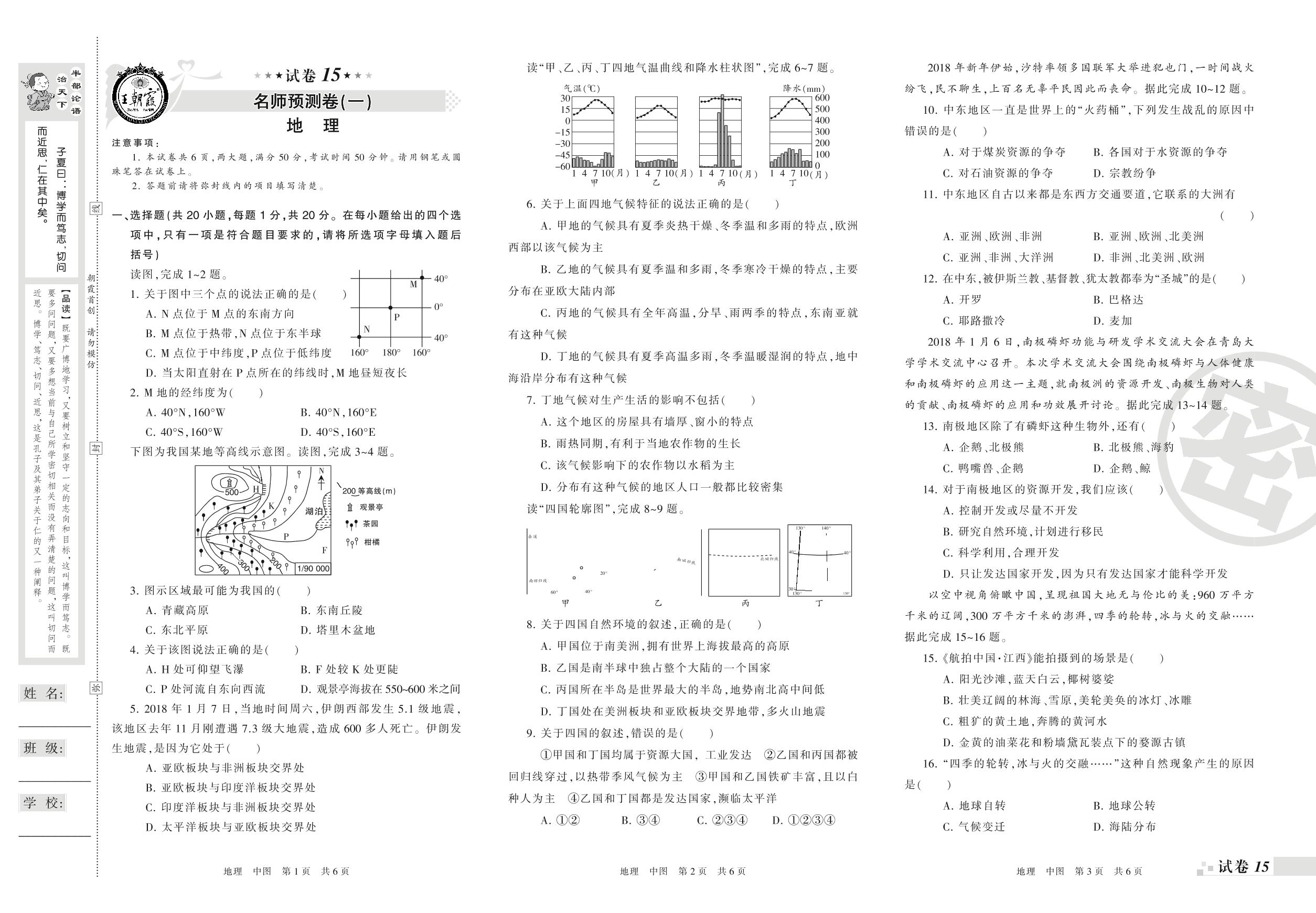 王朝霞期末预测卷(一)八年级下册地理(中图版)【15】