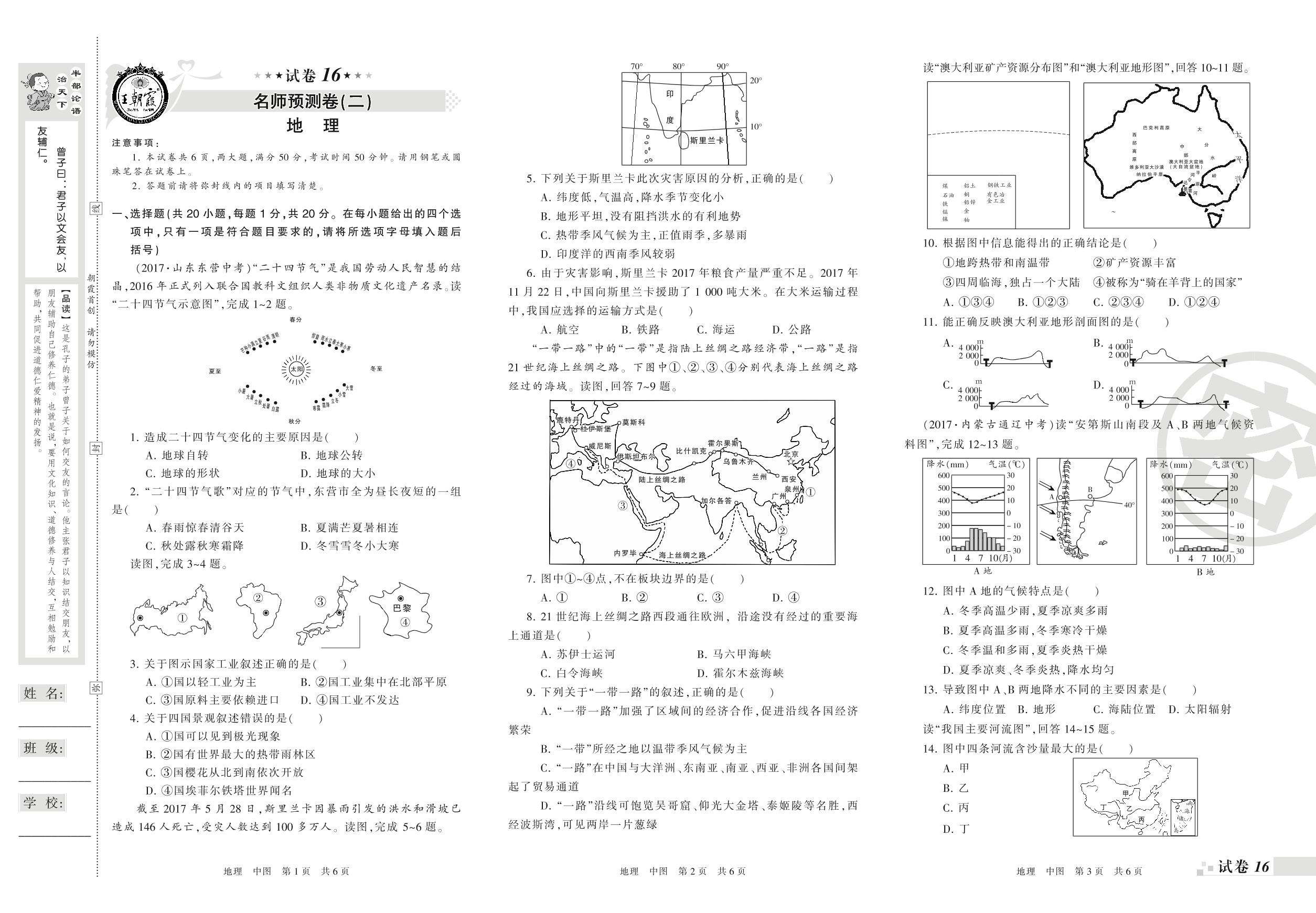 王朝霞期末预测卷(二)八年级下册地理(中图版)【16】