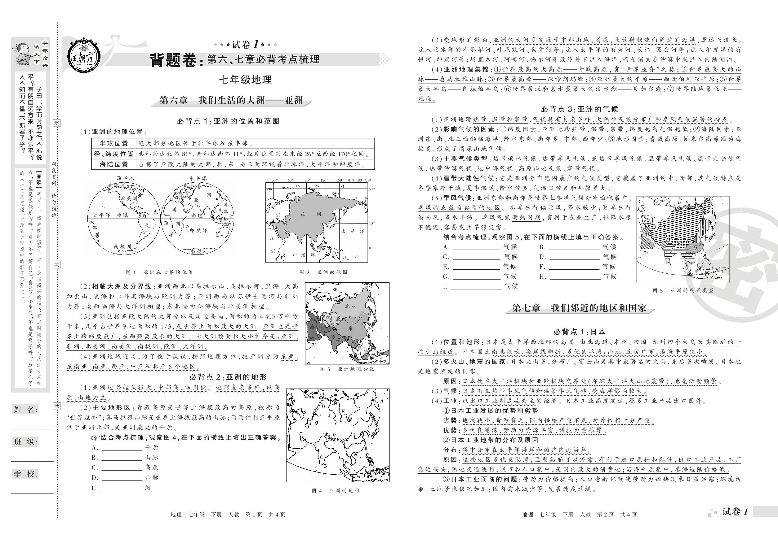 王朝霞期末背题卷——第六、七章必背考点梳理七年级下册地理(人教版)【1】