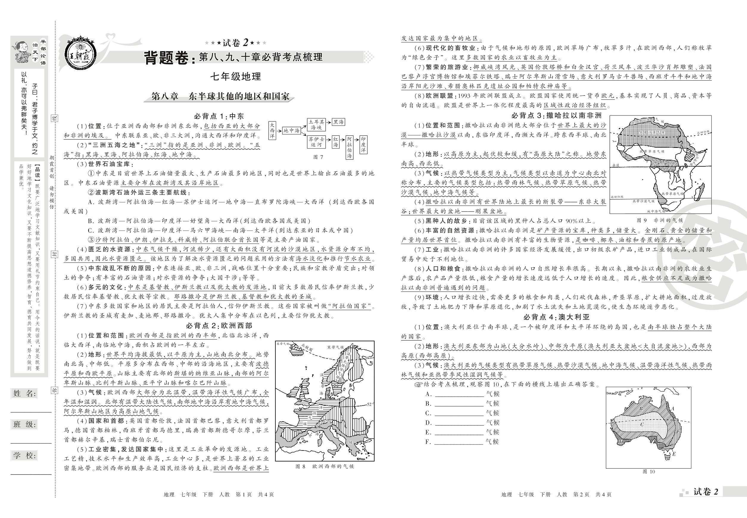 王朝霞期末背题卷——第八、九、十章必背考点梳理七年级下册地理(人教版)_R210810151251【2】