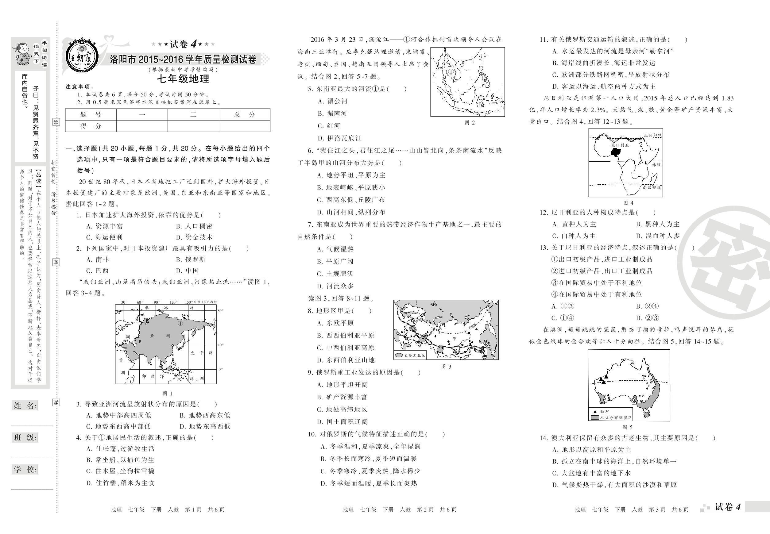 2015-2016学年第二学期洛阳市七年级地理试卷(人教版)【4】