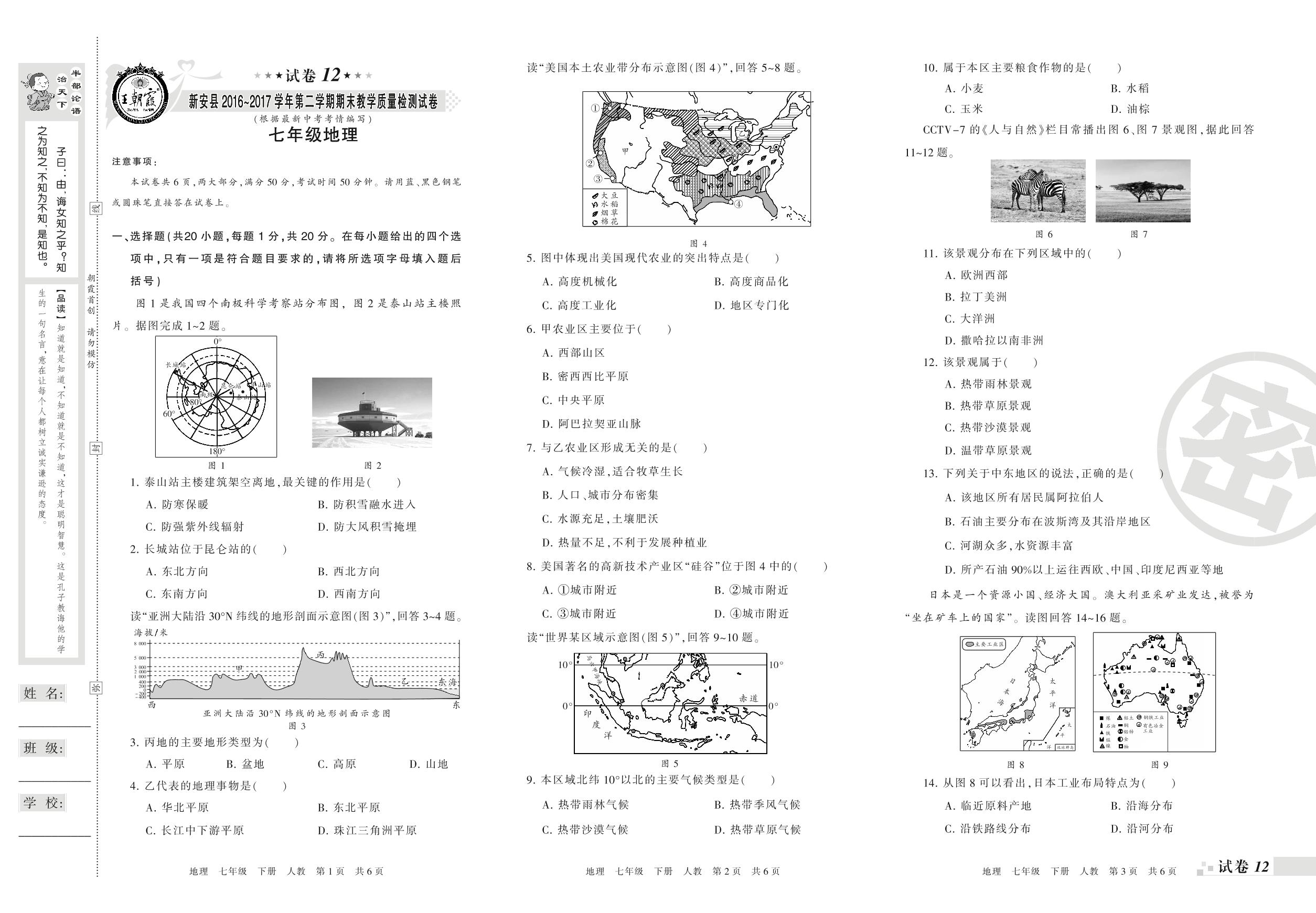 2016-2017学年第二学期洛阳市新安县七年级地理试卷(人教版)【12】