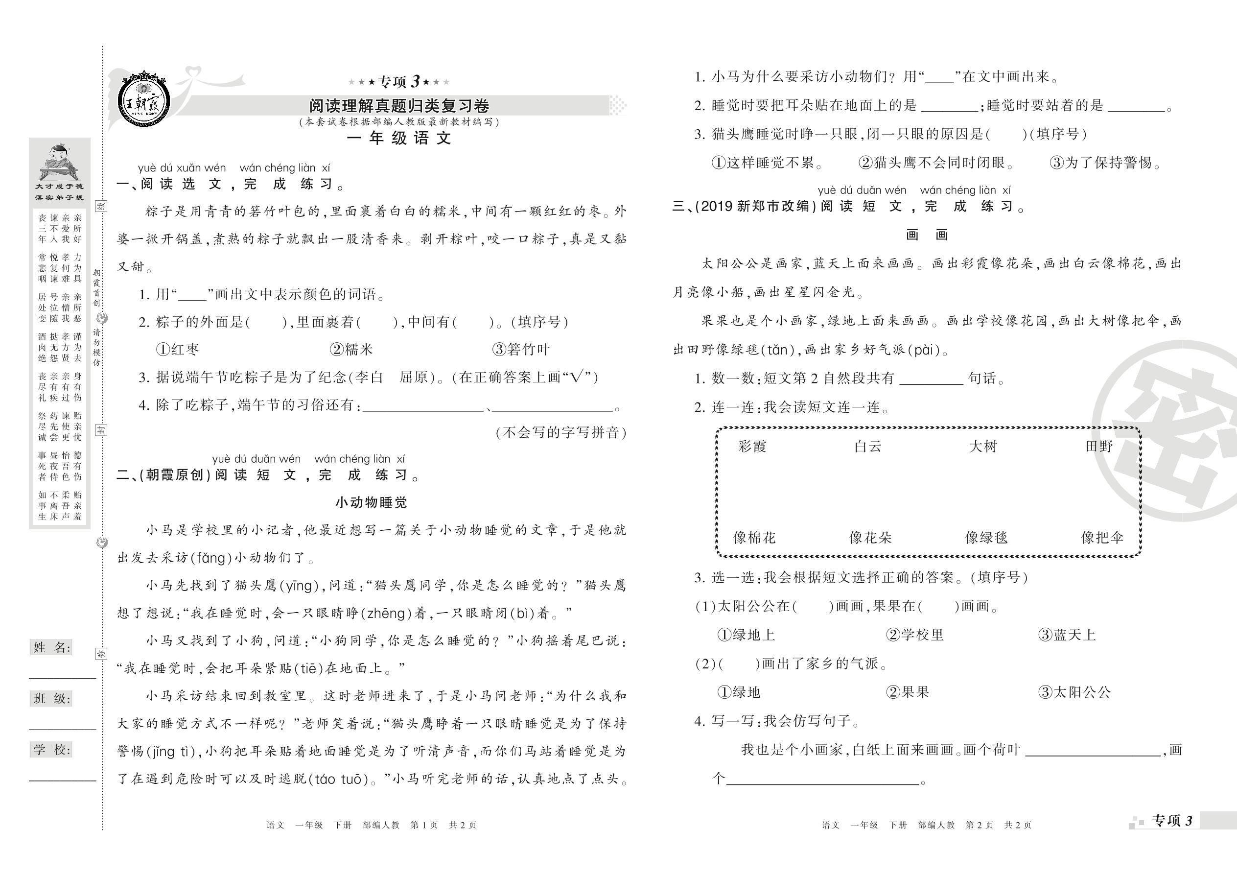 王朝霞期末专项卷——阅读理解、写话真题归类复习卷一年级下册语文(人教版)_R210731175816【0】