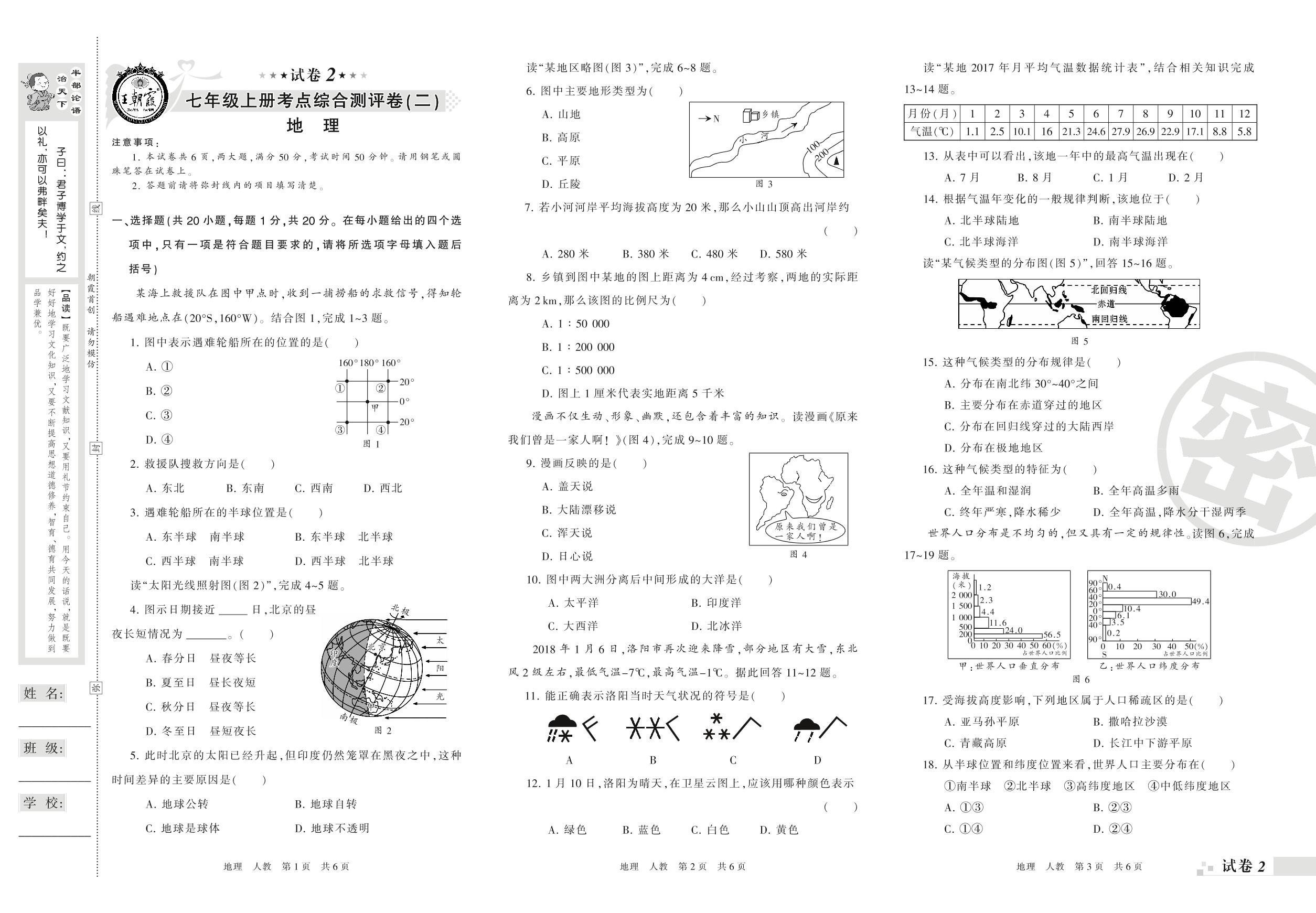 王朝霞期末测评卷——考点综合测评卷(二)七年级上册地理(人教版)【2】